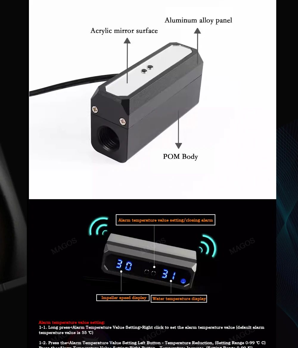Comprar Monitor de alarma de refrigeración por agua para PC, apagado de bomba de agua, recordatorio de alta temperatura, negro/plata, LSJ-ZNBJ, novedad de 2023
