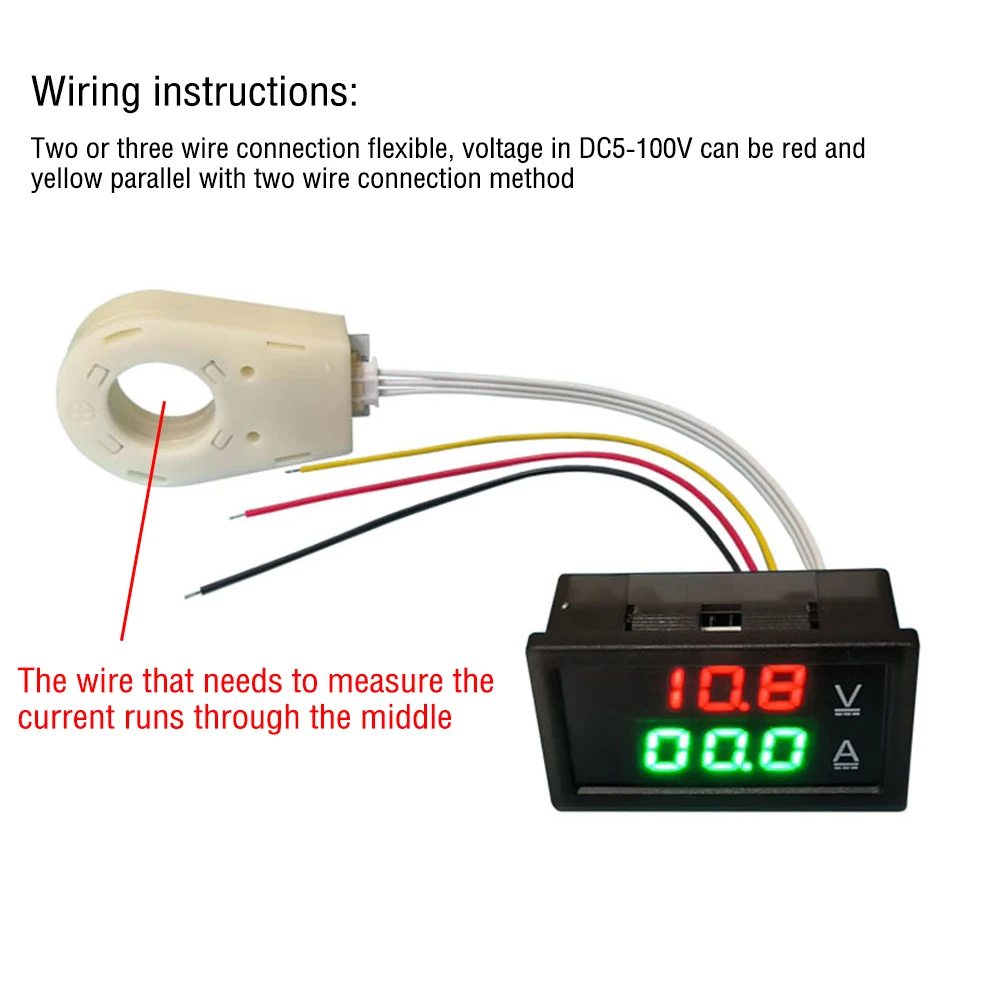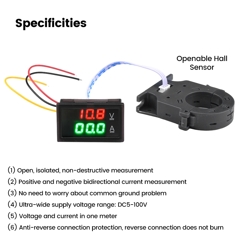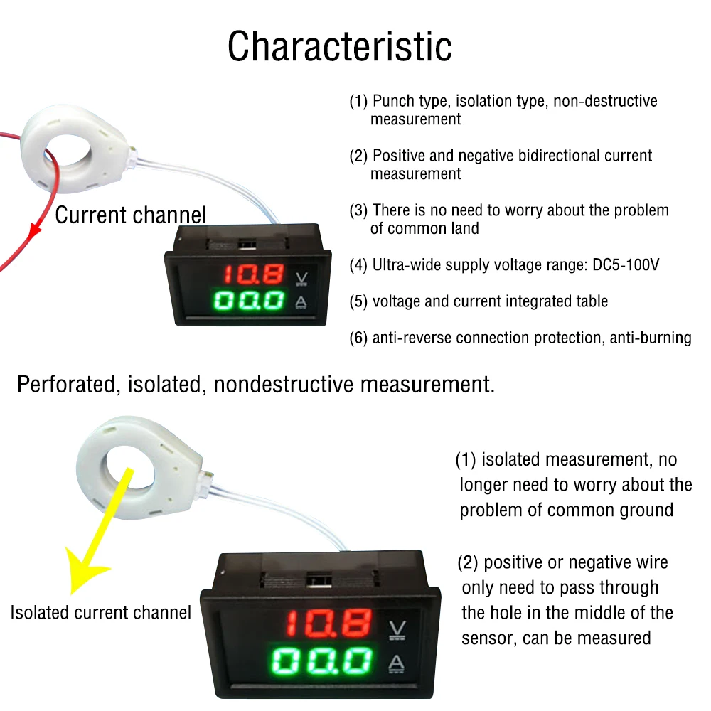 1 x voltímetro amperímetro Hall DC 0-300V 50A 100A 200A 400A Monitor de batería LED medidor de voltaje de corriente Digital 12V 24V 36V 48V 60V coche