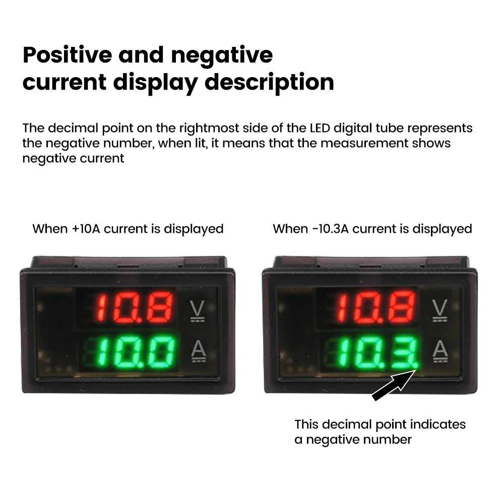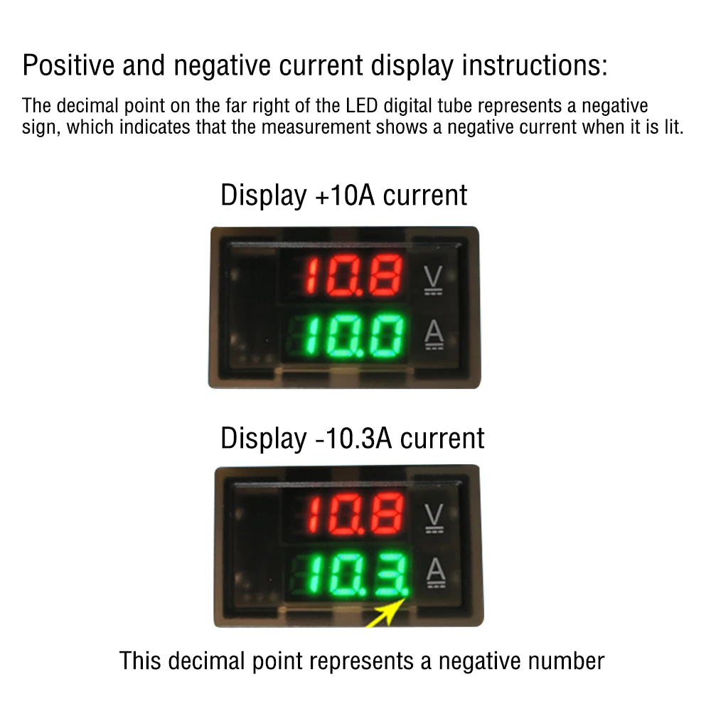 El punto decimal en el extremo derecho del tubo digital LED representa una señal negativa, lo que indica que la medición muestra una corriente negativa cuando está encendida.