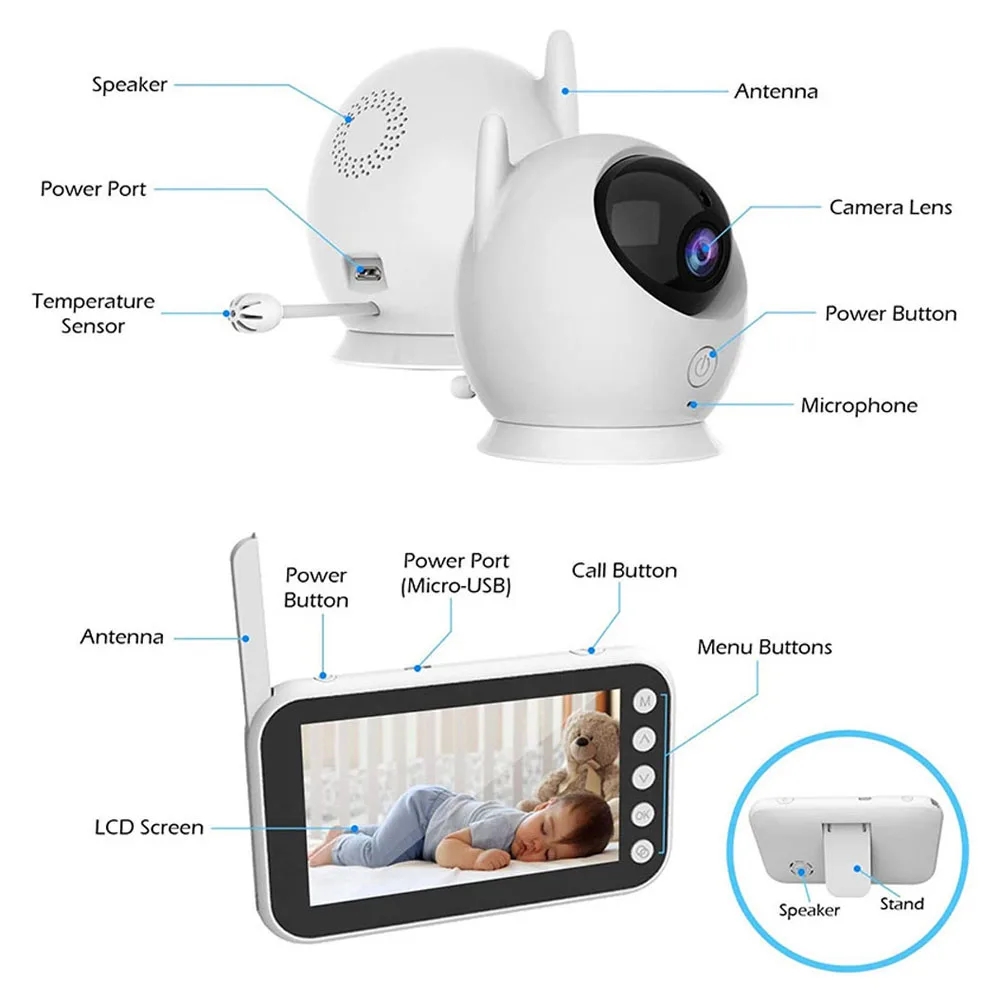 Monitor de bebé de vídeo inalámbrico con pantalla LCD HD de 4,3"