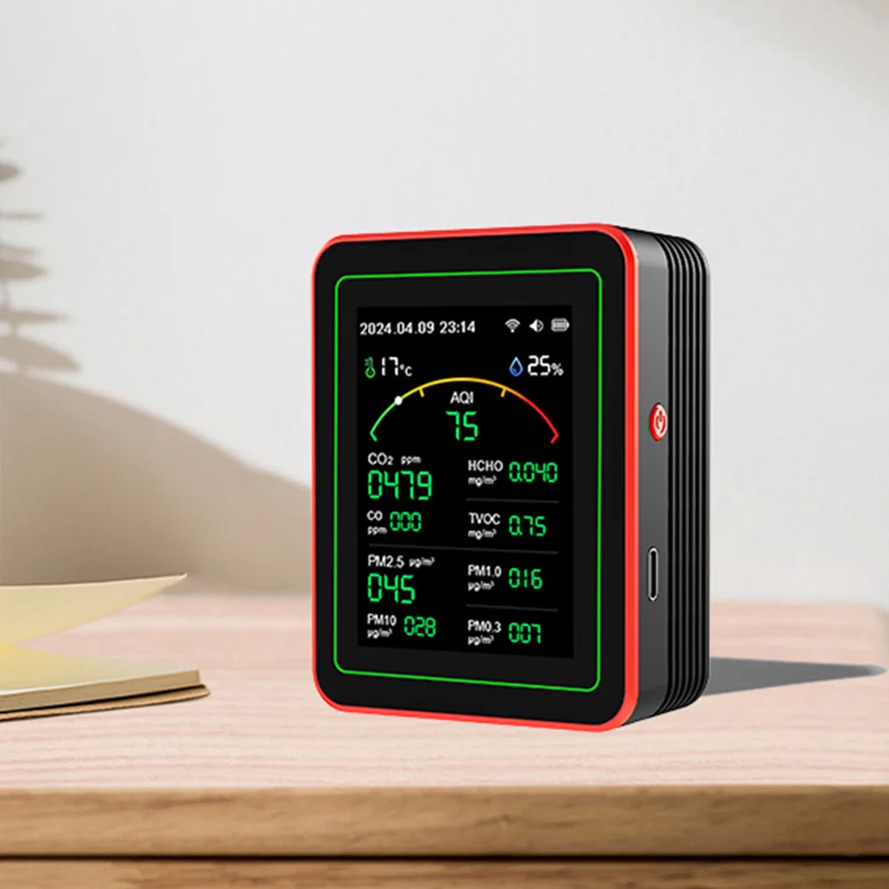 4.Alertas y advertencias visuales:Conecte el probador doméstico de co2 tvoc hcho al WiFi y configure los valores de alarma según sea necesario.Cuando las mediciones superan los estándares establecidos, el dispositivo emite tres pitidos urgentes y cambia los colores de la interfaz (verde para bueno, naranja para advertencia, rojo para mal), asegurando una respuesta inmediata con alertas visuales claras.