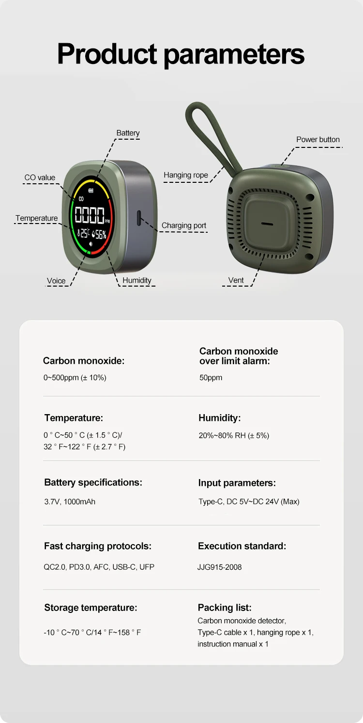 K5B CO sin retroiluminación únicamente (CO)--Detector de monóxido de carbono