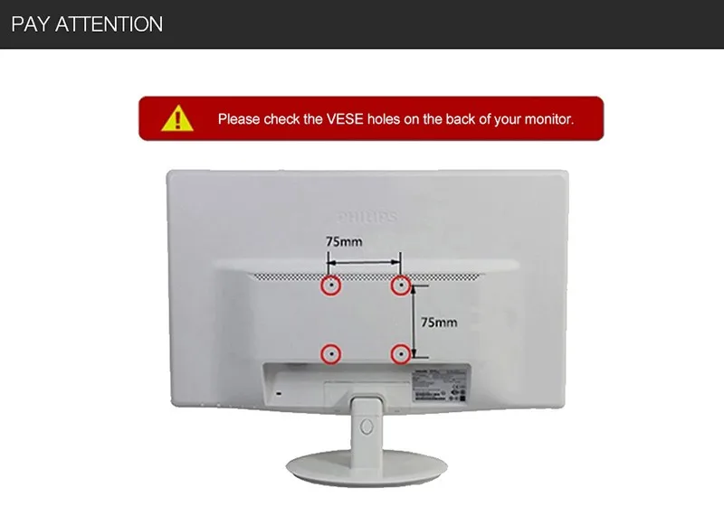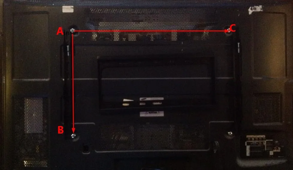 Mire la parte posterior de su televisor, busque los orificios de montaje y mida el ancho A- C y la altura A- B, debería ser uno de cualquier valor del tamaño VESA declarado en la descripción del producto.