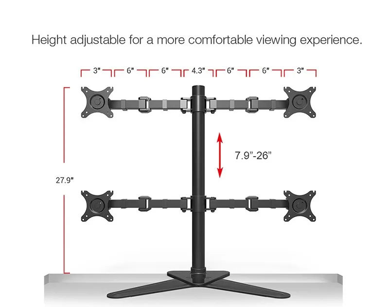 Comprar Monitor cuádruple de escritorio, soporte independiente con cuatro brazos de pantalla, soporte LCD, 4 pantallas aptas para soporte máximo de 10 "-30", soporte para Monitor de 10KG