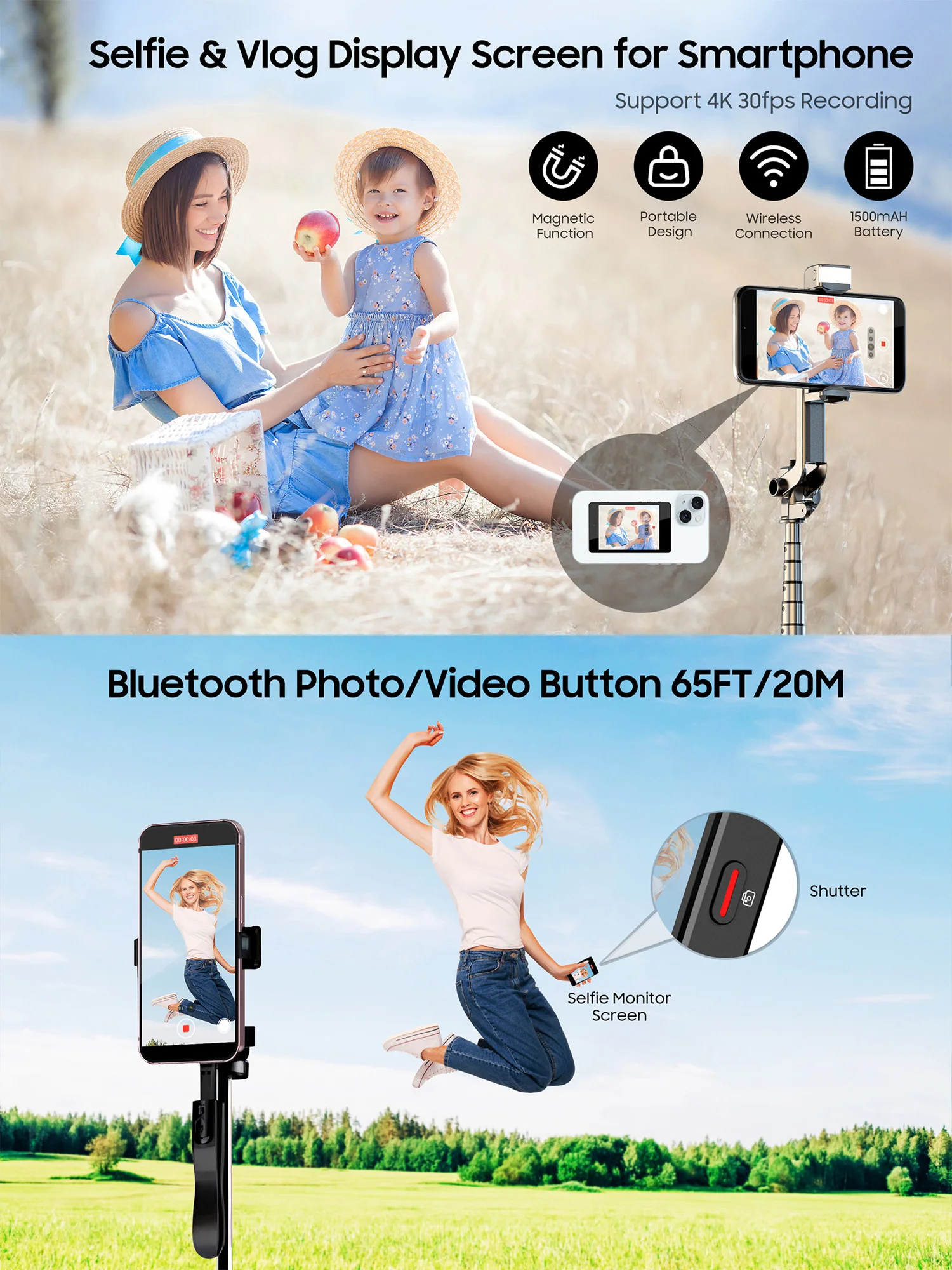 Monitor de disparo inalámbrico magnético pantalla de visualización para IPhone Android Smartphone cámara trasera Selfie inalámbrico a través de Bluetooth WIFI