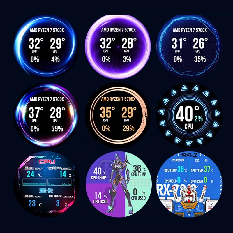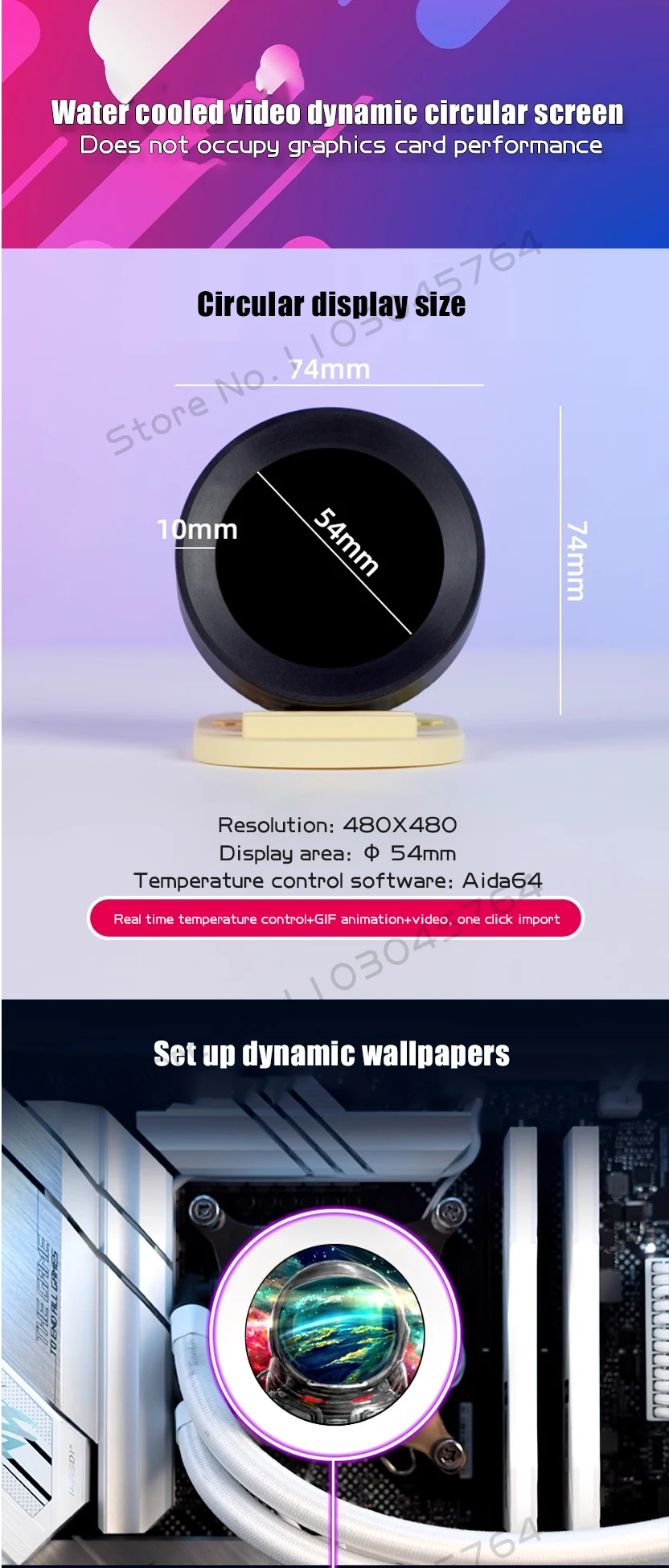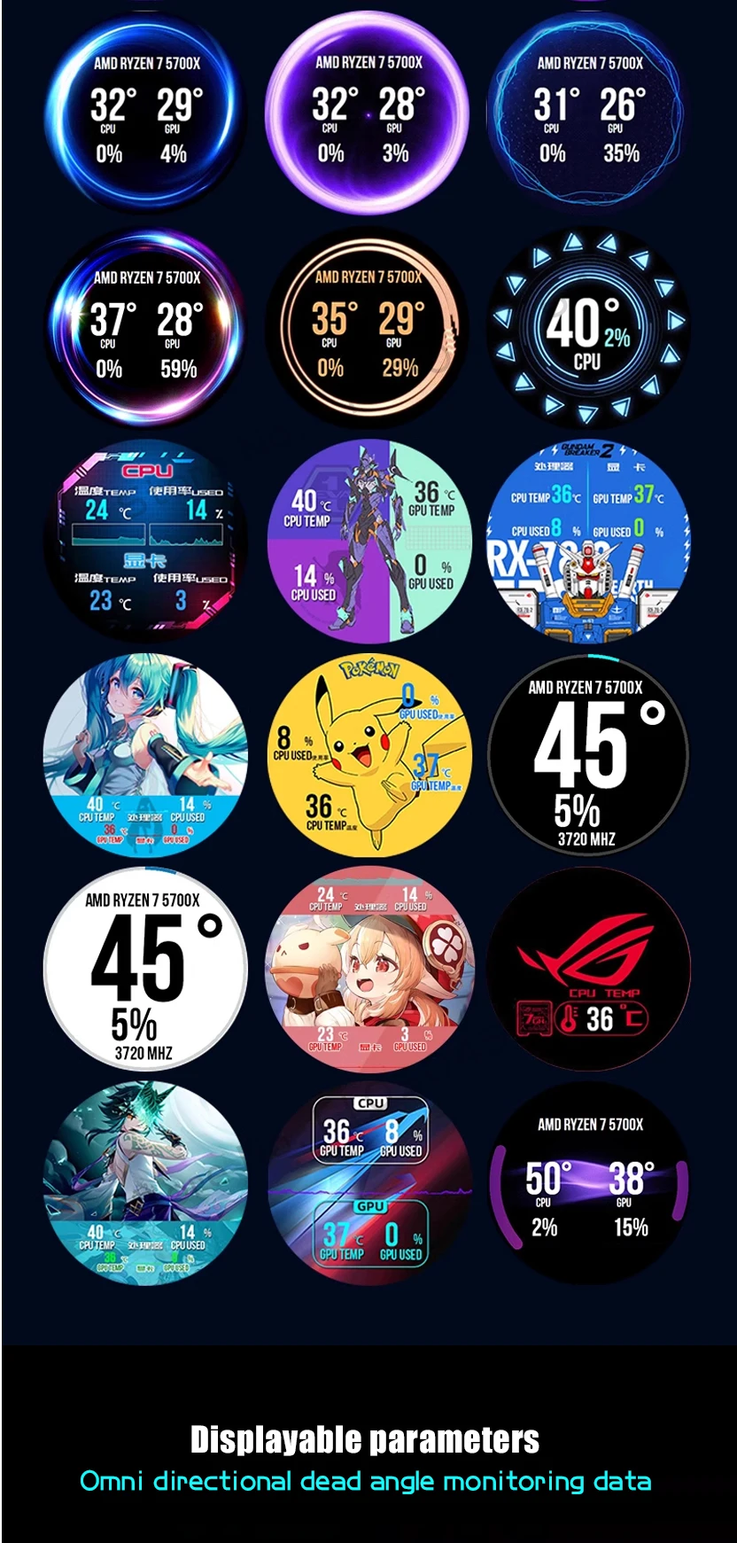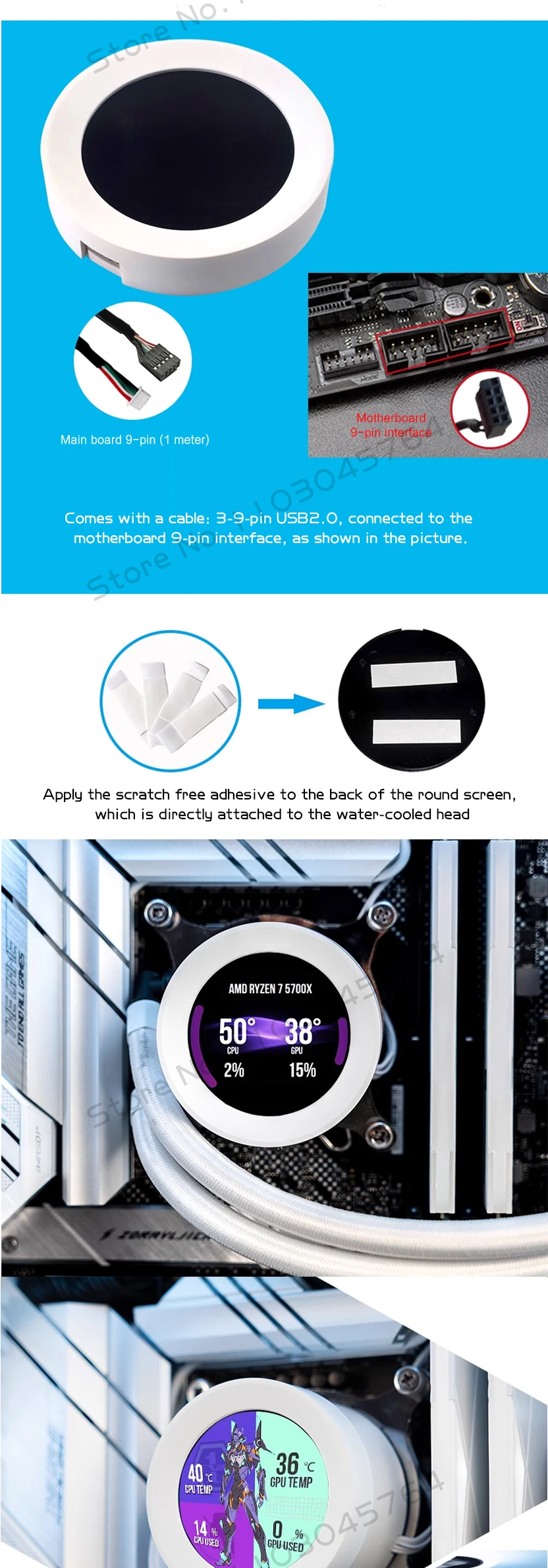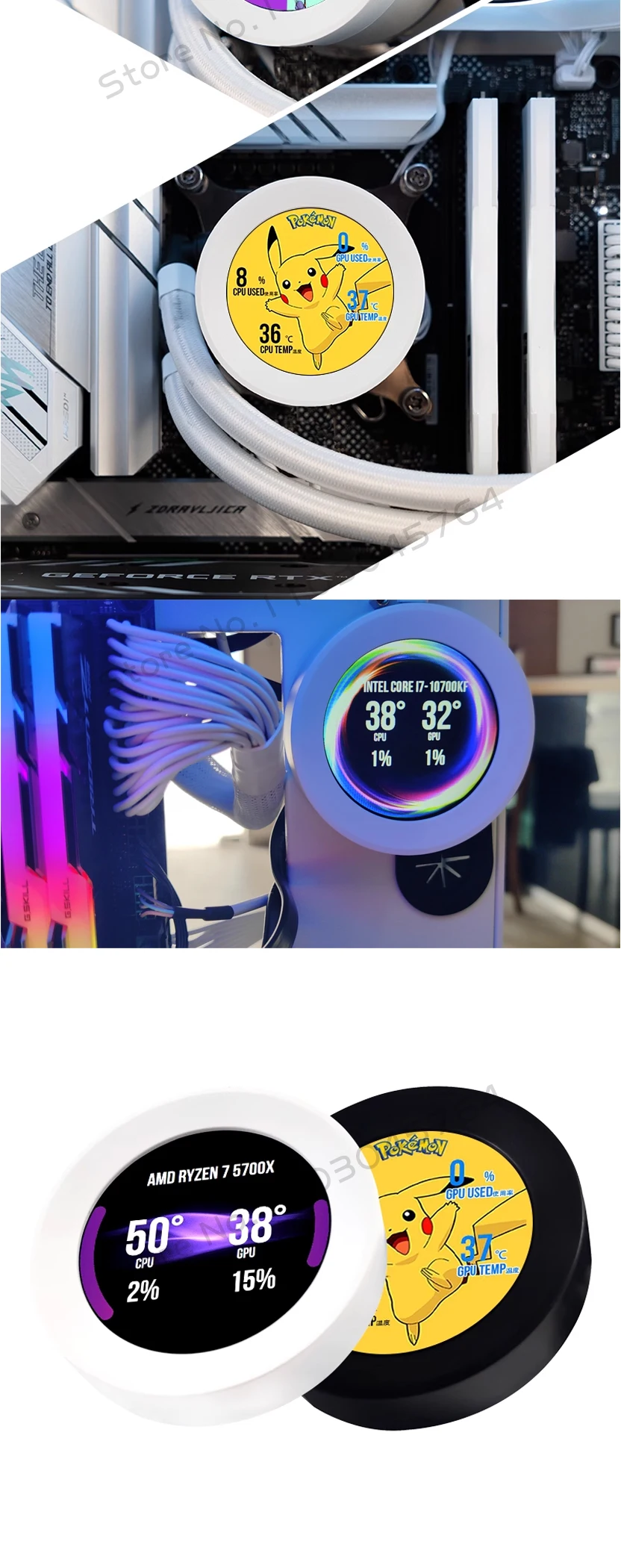 Comprar Monitor de enfriador de agua de CPU, pantalla IPS en tiempo Real de 2,1 pulgadas, pantalla dinámica de temperatura para enfriador AIO 120/240/360 USB libre AIDA64