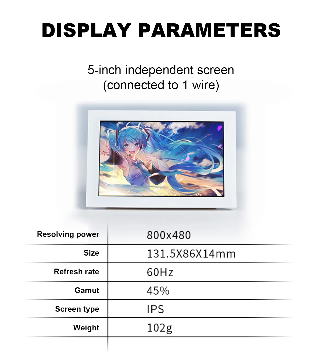 Nota: La Pantalla de 5 pulgadas se envía en blanco por defecto. Si necesita negro, por favor haga comentarios después de realizar el pedido o contáctenos.