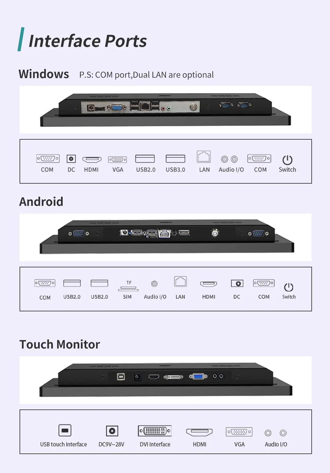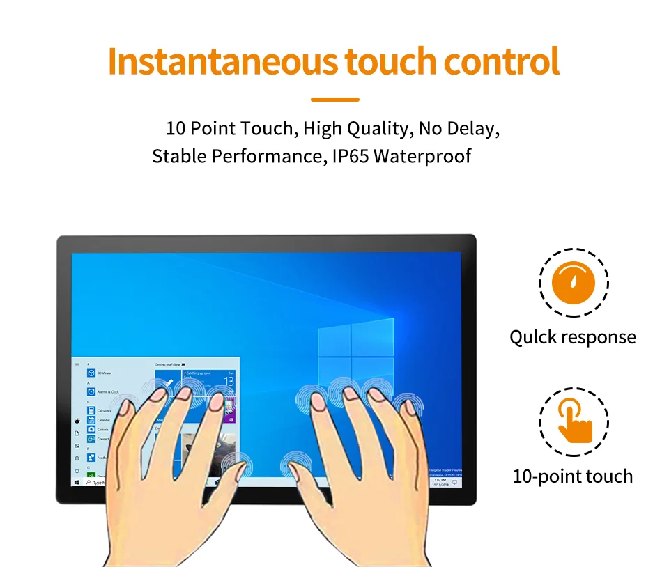 El monitor tiene una fuerte capacidad antiinterferencias, si su entorno de producción es más complejo, comuníquese con nuestro servicio de atención al cliente.Contamos con un monitor de estilo completamente cerrado y un estilo completo.Y toque el suministro de PC todo en uno.