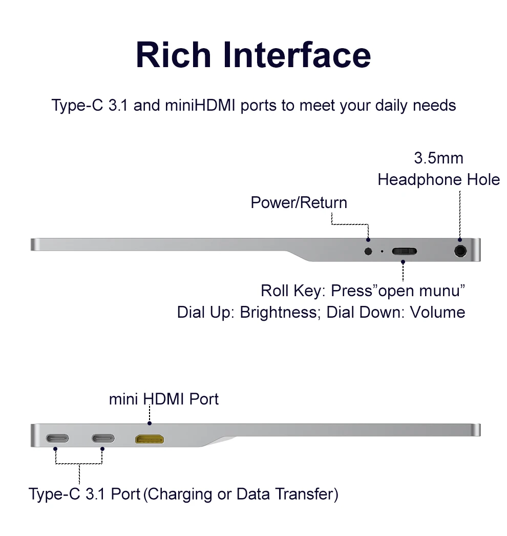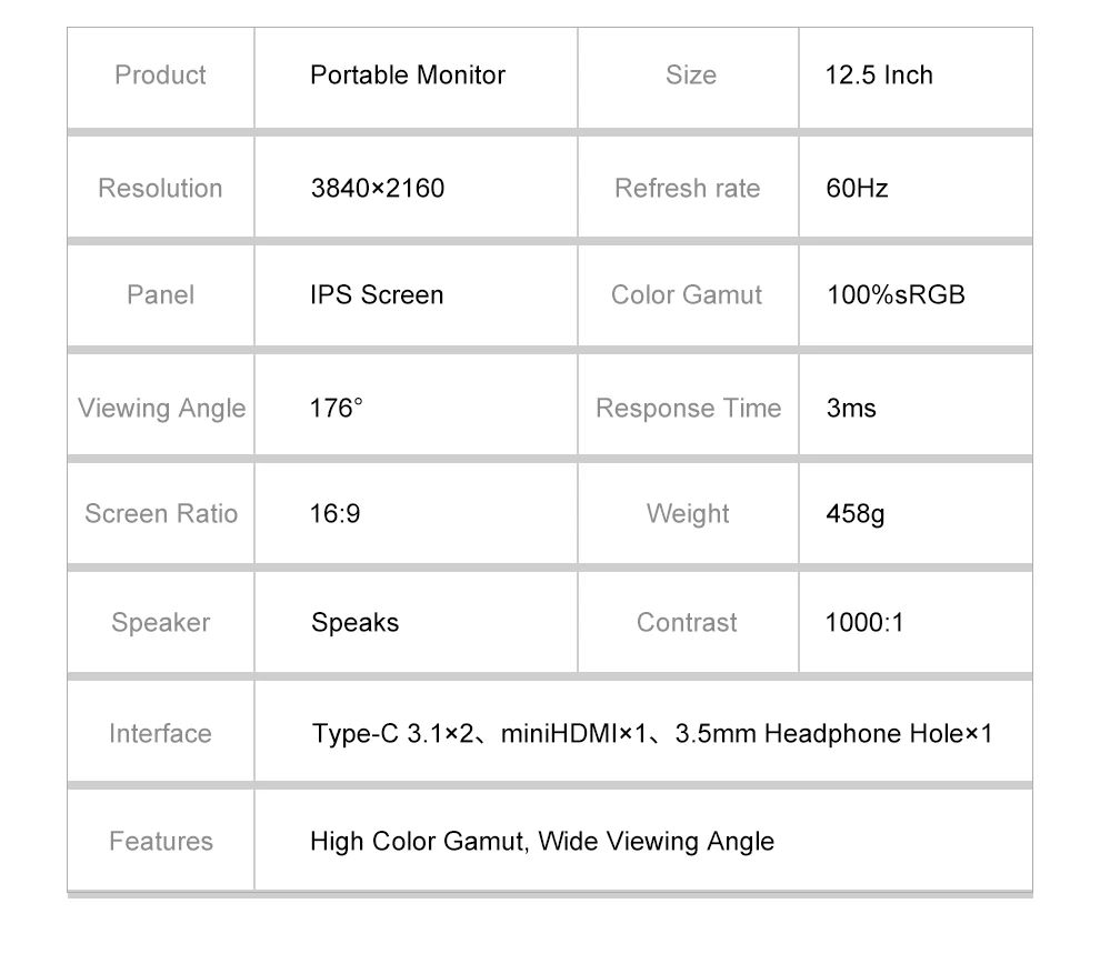 Comprar Monitor de juegos portátil 4K Eye care, 12,5 pulgadas, HDMI, USB, tipo C, pantalla para ordenador portátil, Macbook, teléfono, Raspberry Pi, Switch, PS4, 5, Xbox, PC