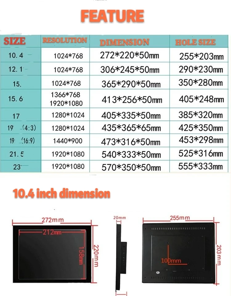 1. Tamaño:10,1 ”, 10,4”, otras tallas 12 ”, 15”, 17 ”, 19”, 21,5 ”, 22”