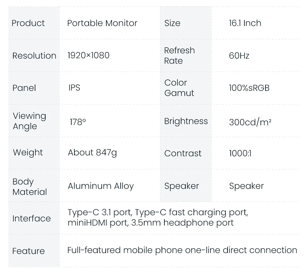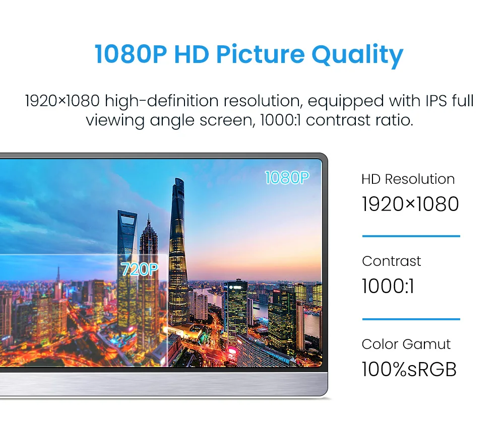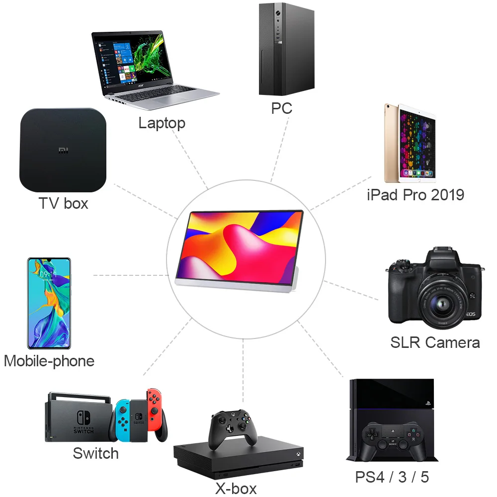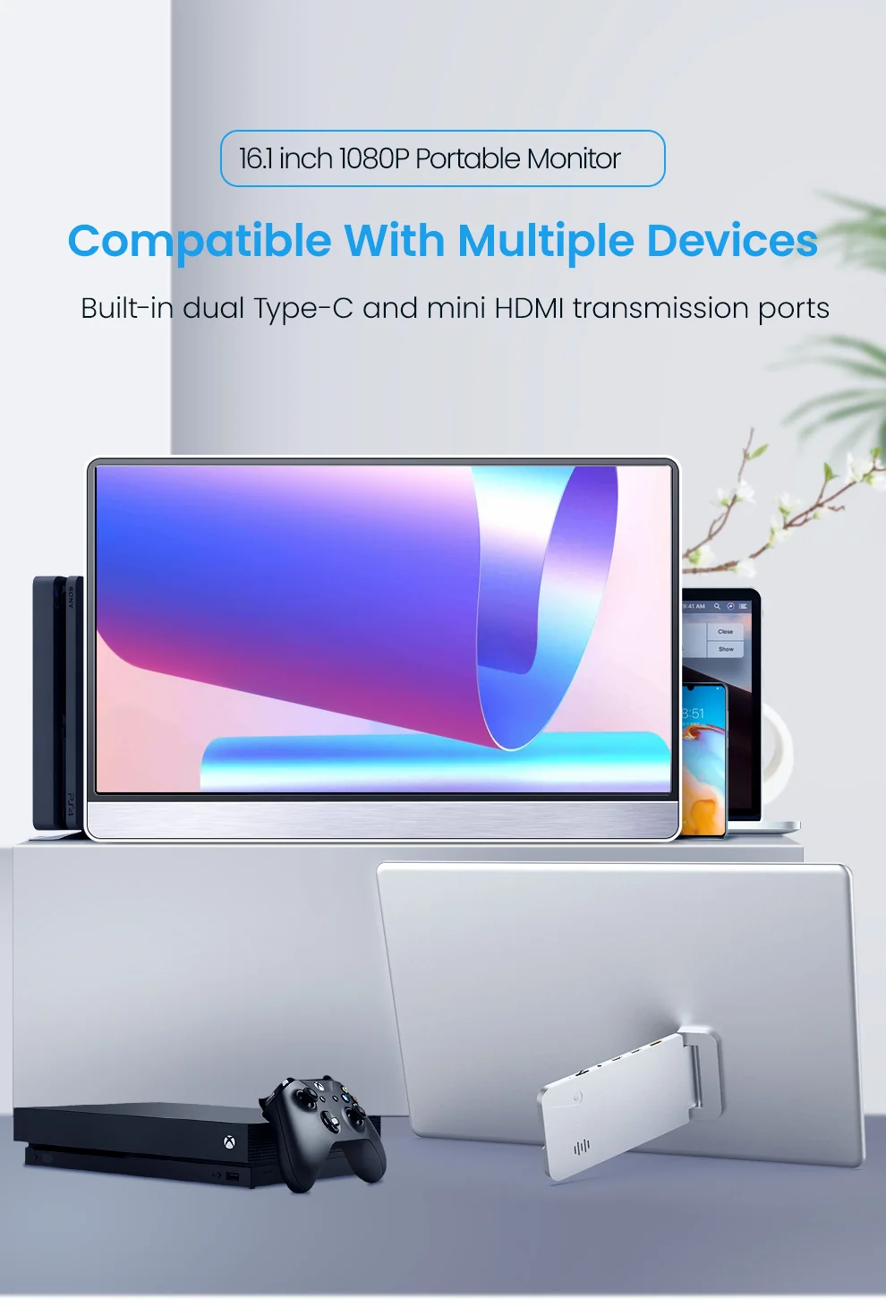 Comprar Monitor LCD portátil de 16,1 pulgadas, 1080P, para Xbox Series X, PS4, Switch, pantalla HDMI para teléfono, PC, juegos, ordenador portátil