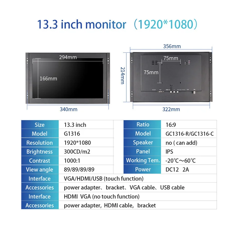 Comprar Monitor de Marco abierto para equipos industriales pantalla táctil LCD de 13,3 pulgadas 1920x1080 IPS ángulo de visión completo barato de fábrica