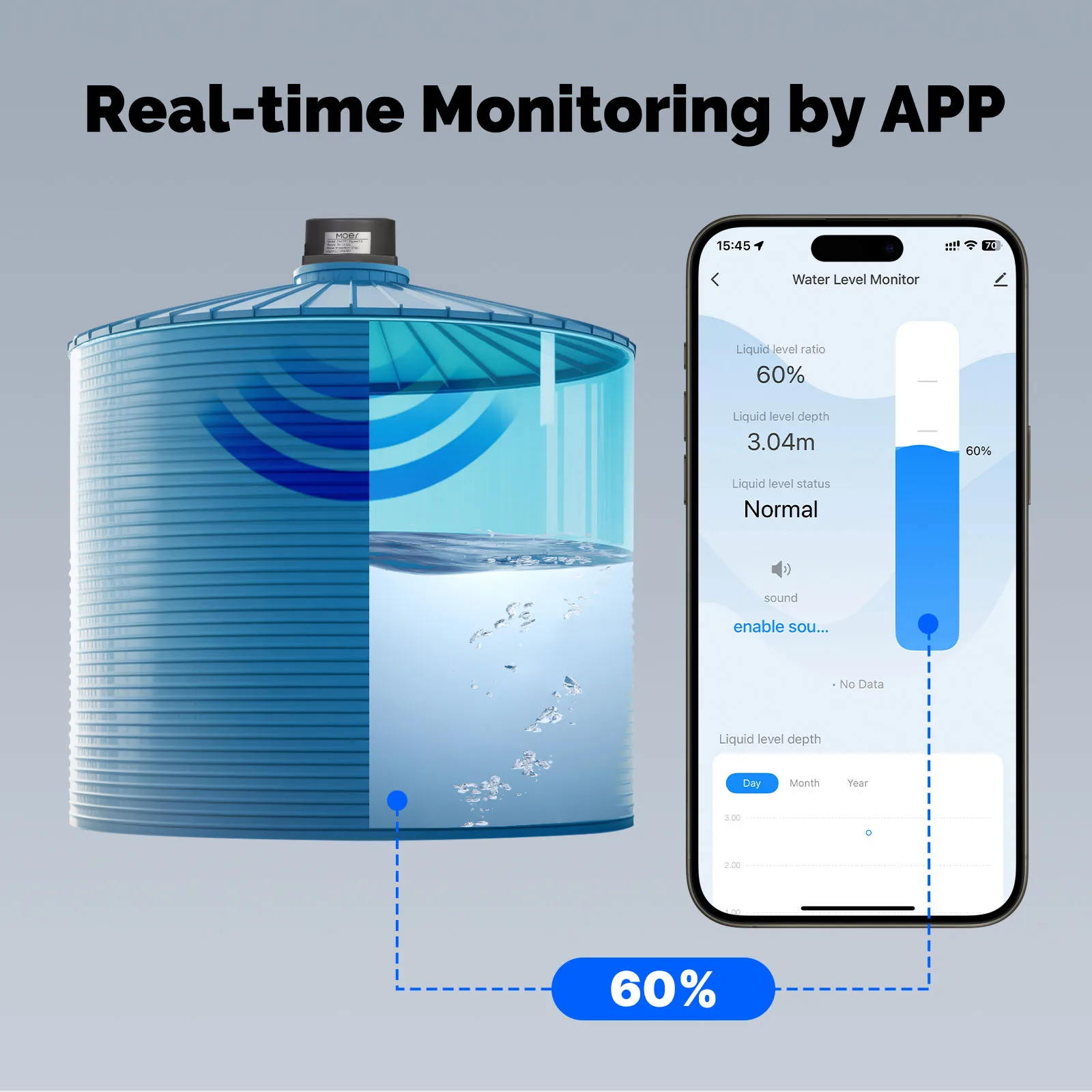 Monitor inteligente de tanque ultrasónico WiFi/ZigBee con alertas en tiempo real y control remoto por APP. Sensor inteligente de nivel de agua WiFi, IP65 a prueba de agua para uso doméstico.