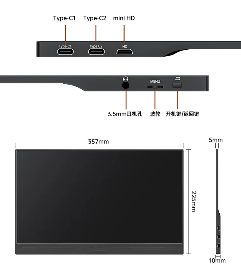 Monitor de pantalla LCD portátil 1080P FHD de 15,6 pulgadas 16:9 60HZ para lapto externo segundo interruptor de juego de ordenador PS4 PS5 XBOX