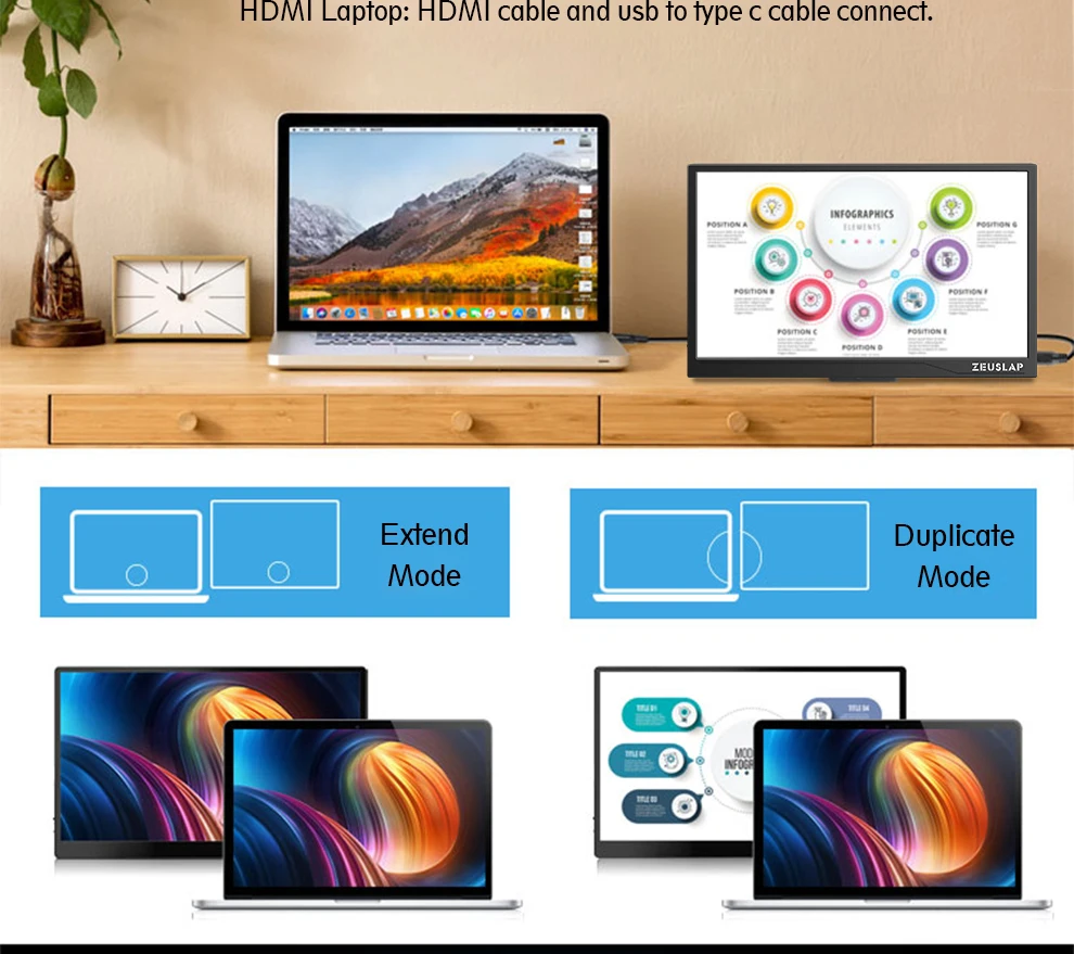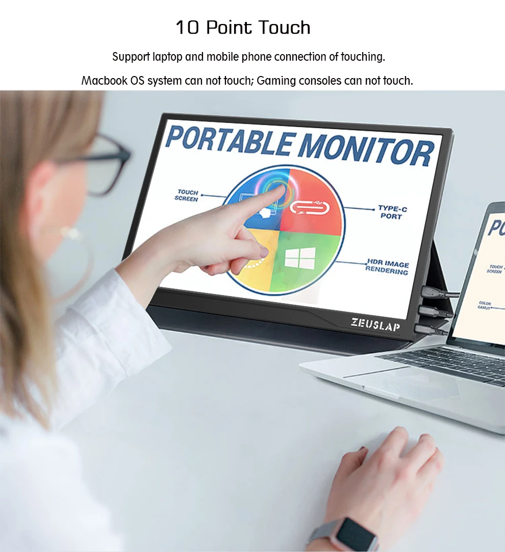 R: Normalmente, todos los portátiles tienen puerto compatible con HDMI o puerto DP para la conexión de pantalla extendida. Así que simplemente use la conexión compatible con HDMI para nuestro monitor. DP a OTG compatible con HDMI también es útil.