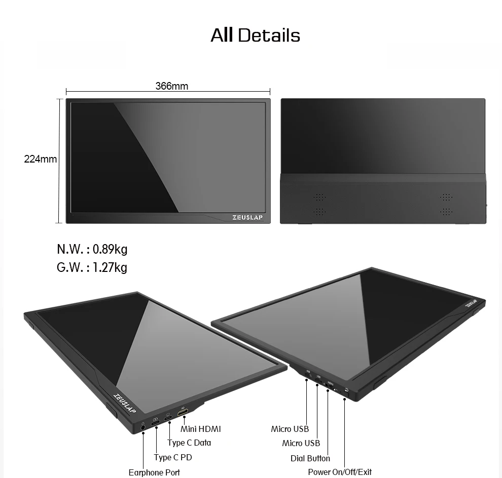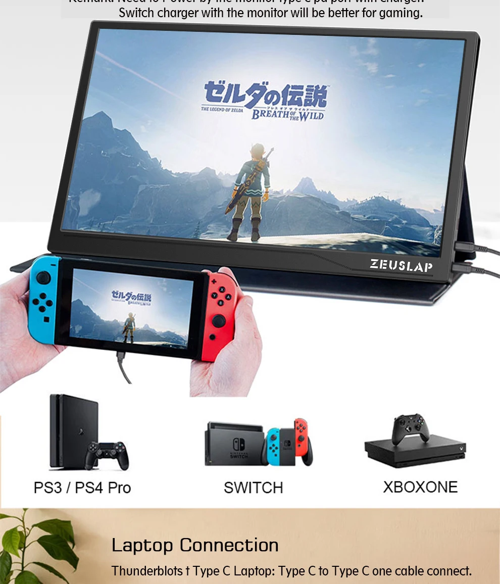 R: Todos estos dispositivos están conectados con el monitor a través de una conexión compatible con HDMI. Primero: alimentación por el monitor con el cargador incluido (conecte el puerto PD tipo C); En segundo lugar, Mini cable compatible con HDMI para conectar el dispositivo y el monitor.