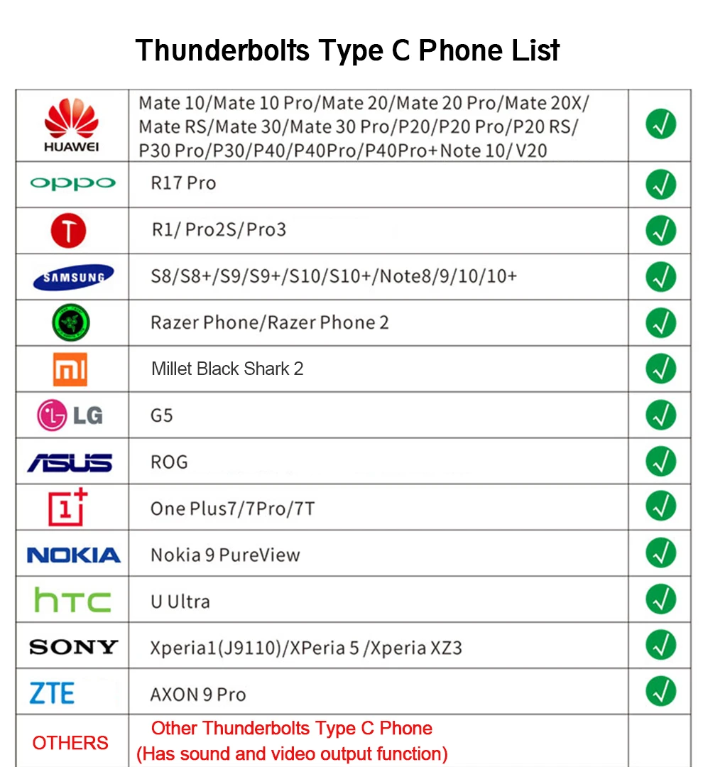 Táctil del teléfono: solo admite el teléfono THUNDERBOLTS TIPO C.