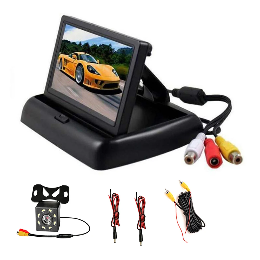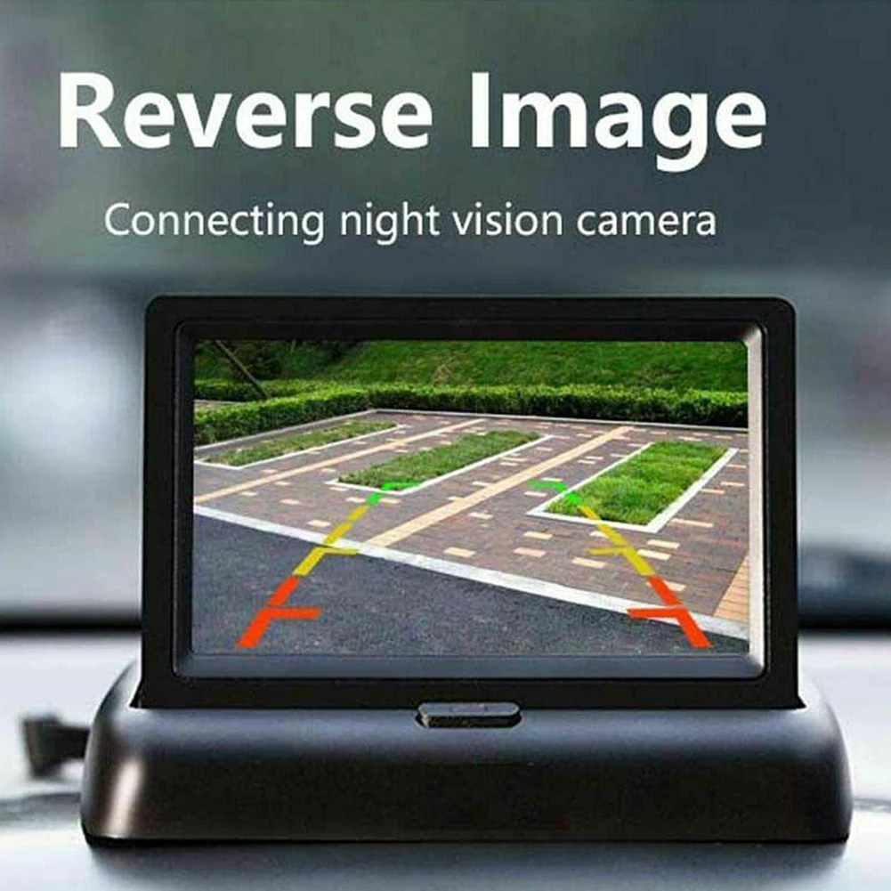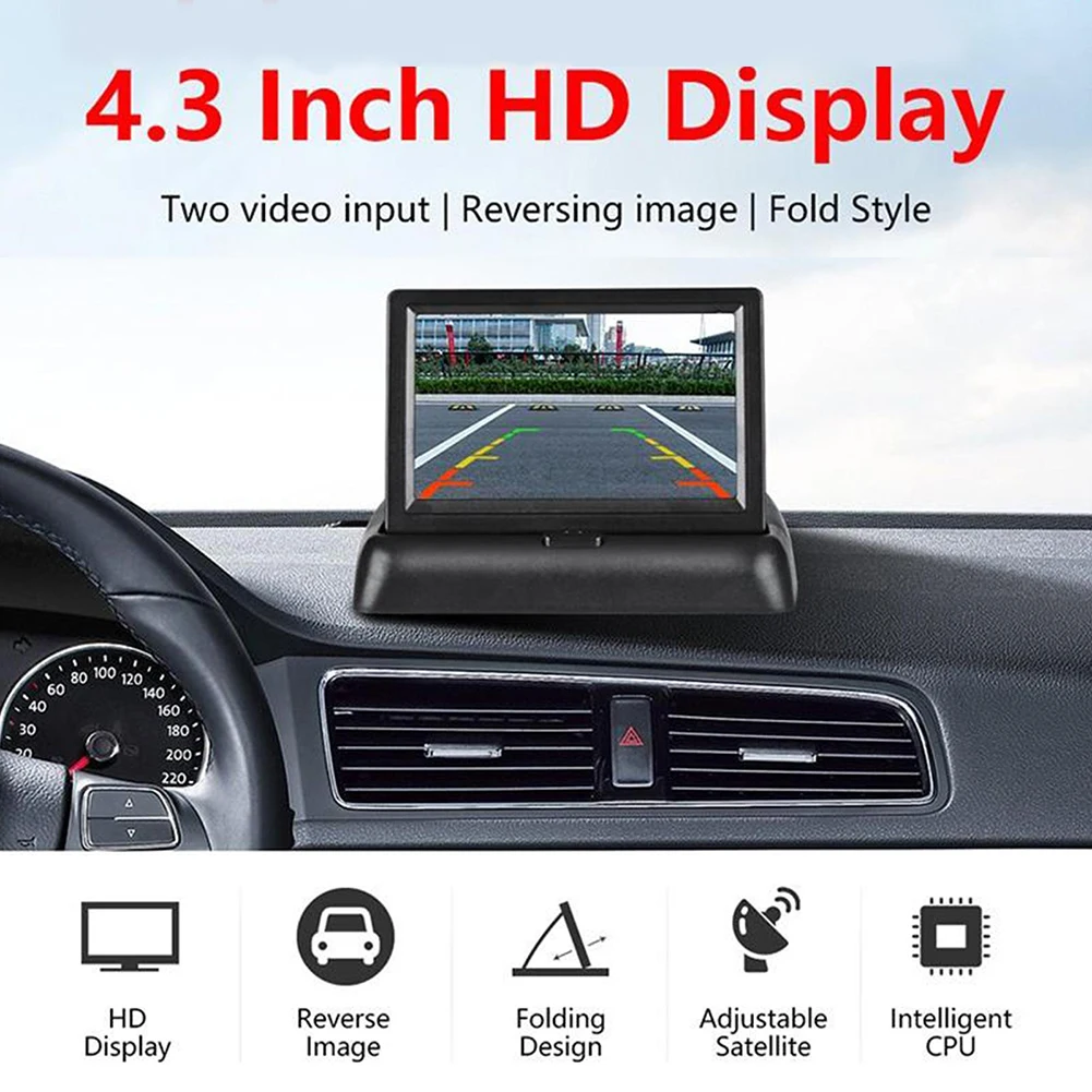 Comprar Monitor plegable de aparcamiento inverso para coche, pantalla TFT LCD de 4,3 pulgadas, HD, entrada de vídeo de 2 canales, accesorios para automóvil