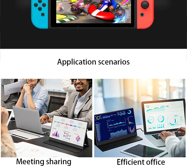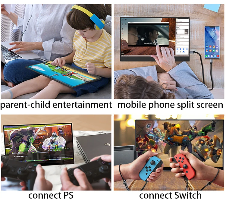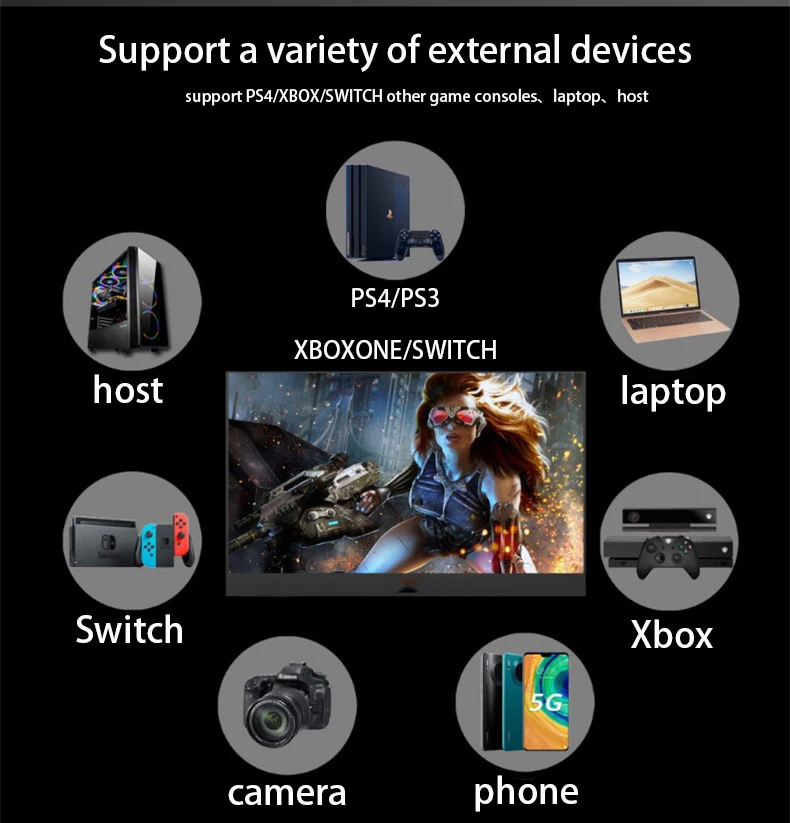 R: todos estos dispositivos están conectados con el monitor A través de una conexión compatible con HDMI. Primero: alimentación por el monitor con el cargador incluido (conecte el puerto pd tipo c); Segundo, Mini HDMI compatible con cable compatible con HDMI para conectar el dispositivo y el monitor.
