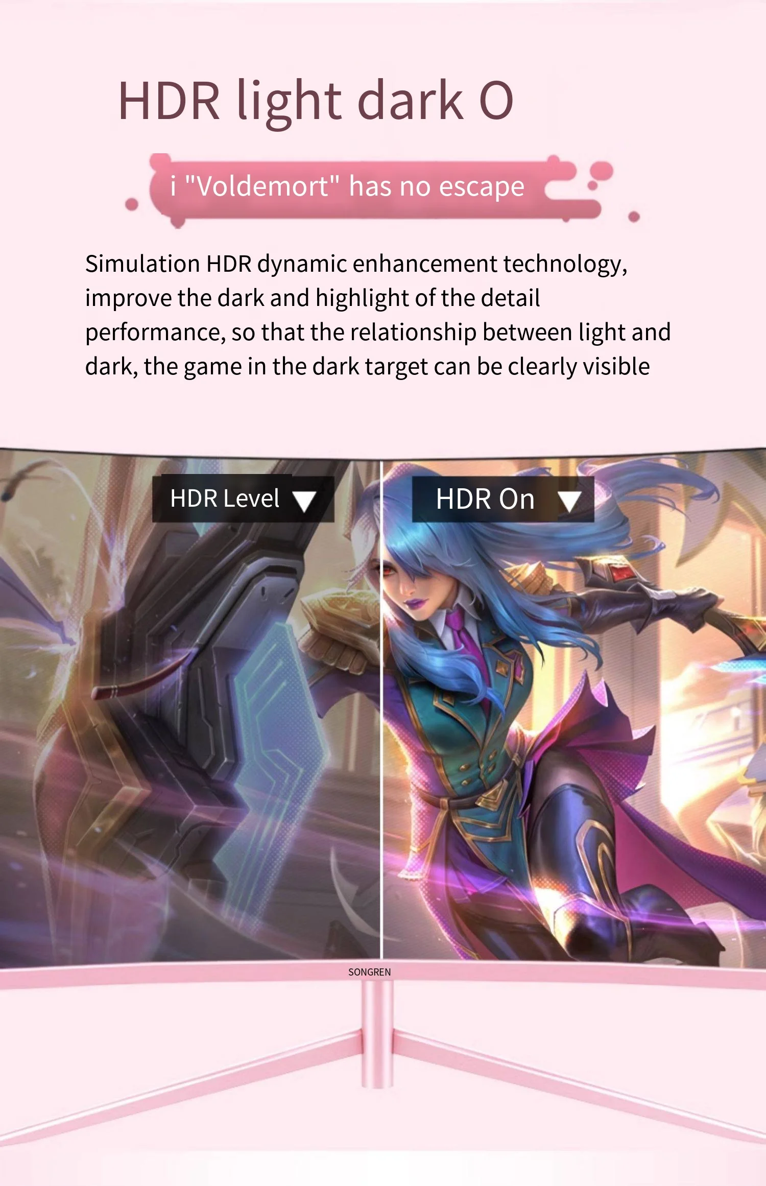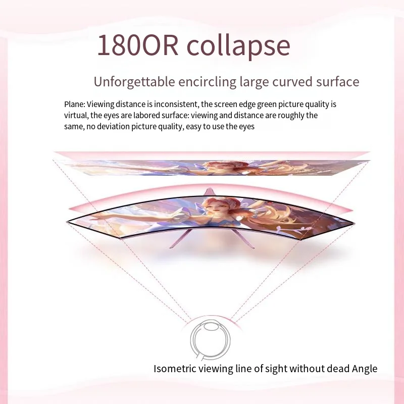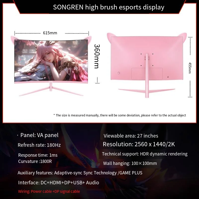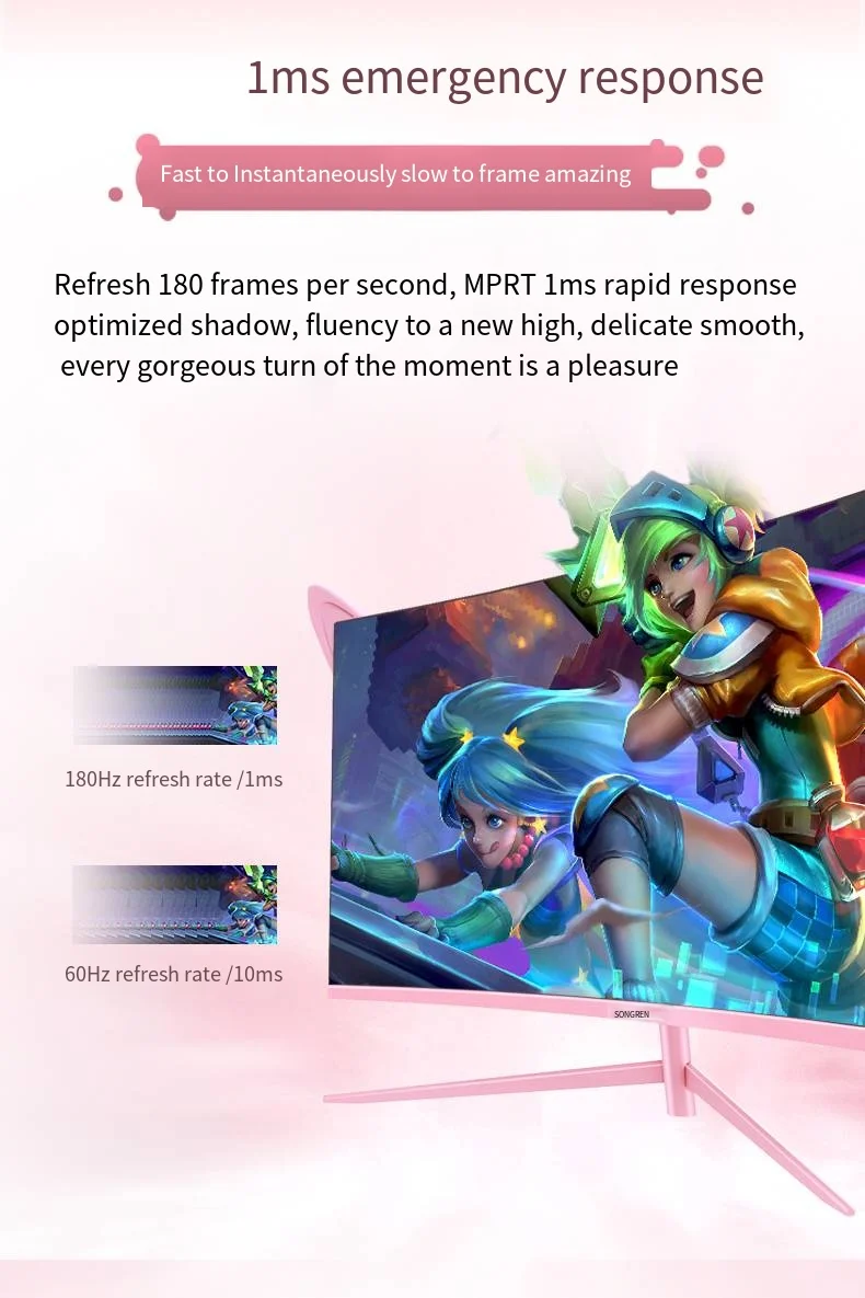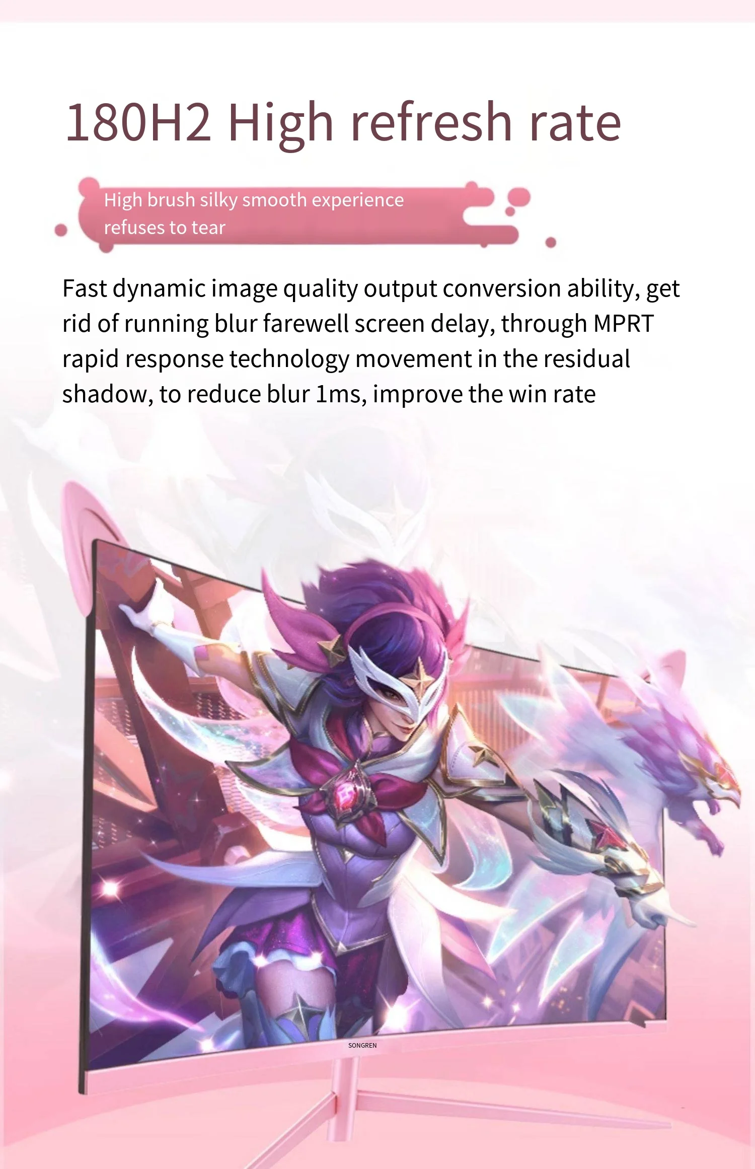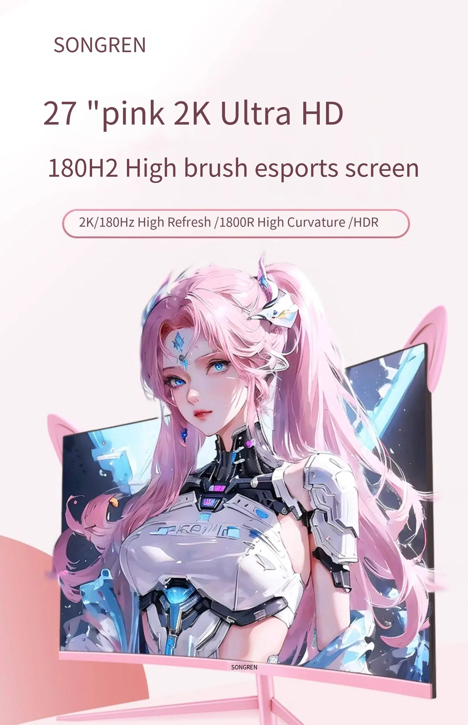 Comprar Monitor rosa curvo de 27 pulgadas 1800R, pantalla de ordenador, pantalla de 2K180HZ, Monitor para juegos, HDMI + DP + USB VA PANEL HDR