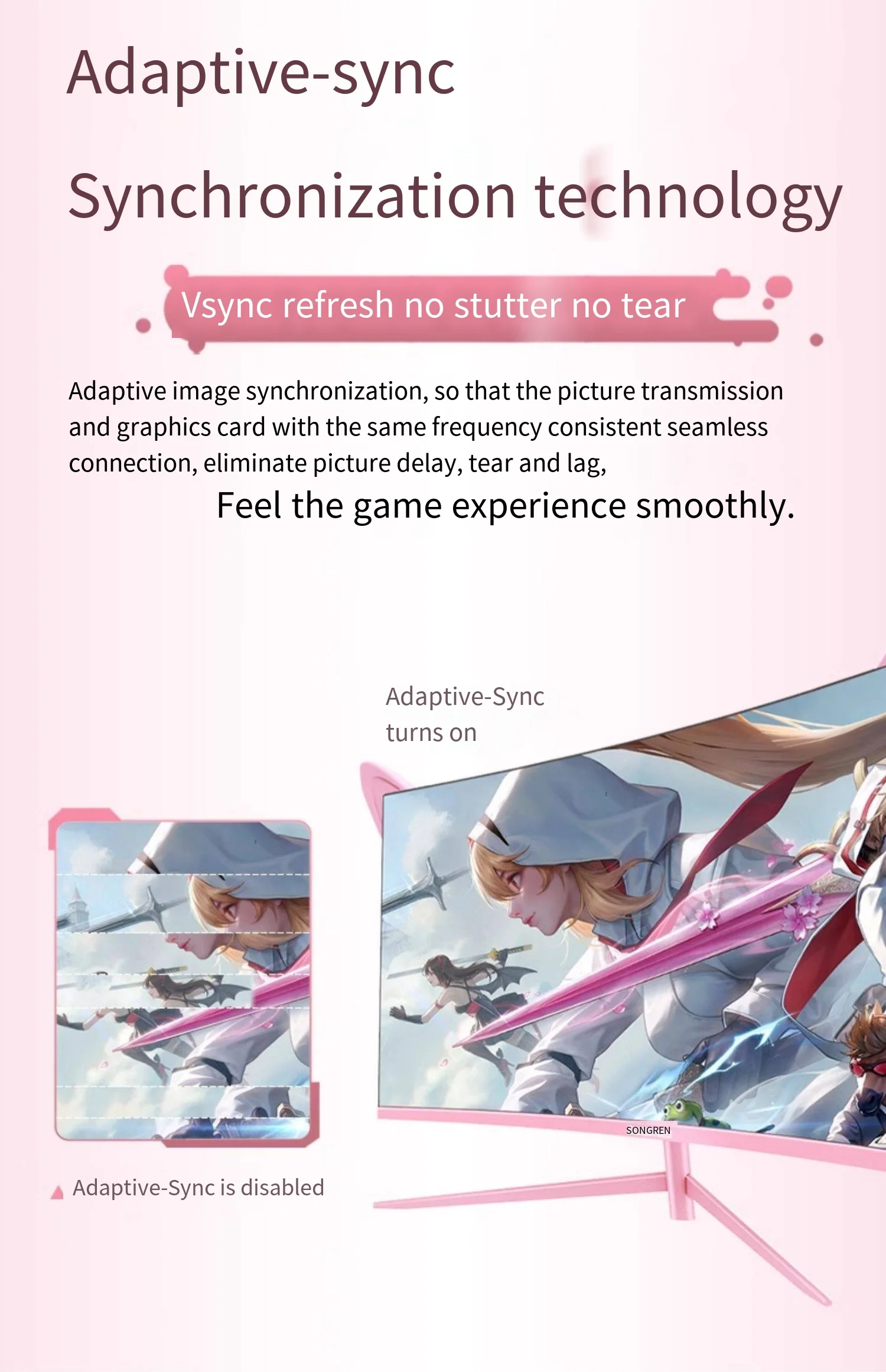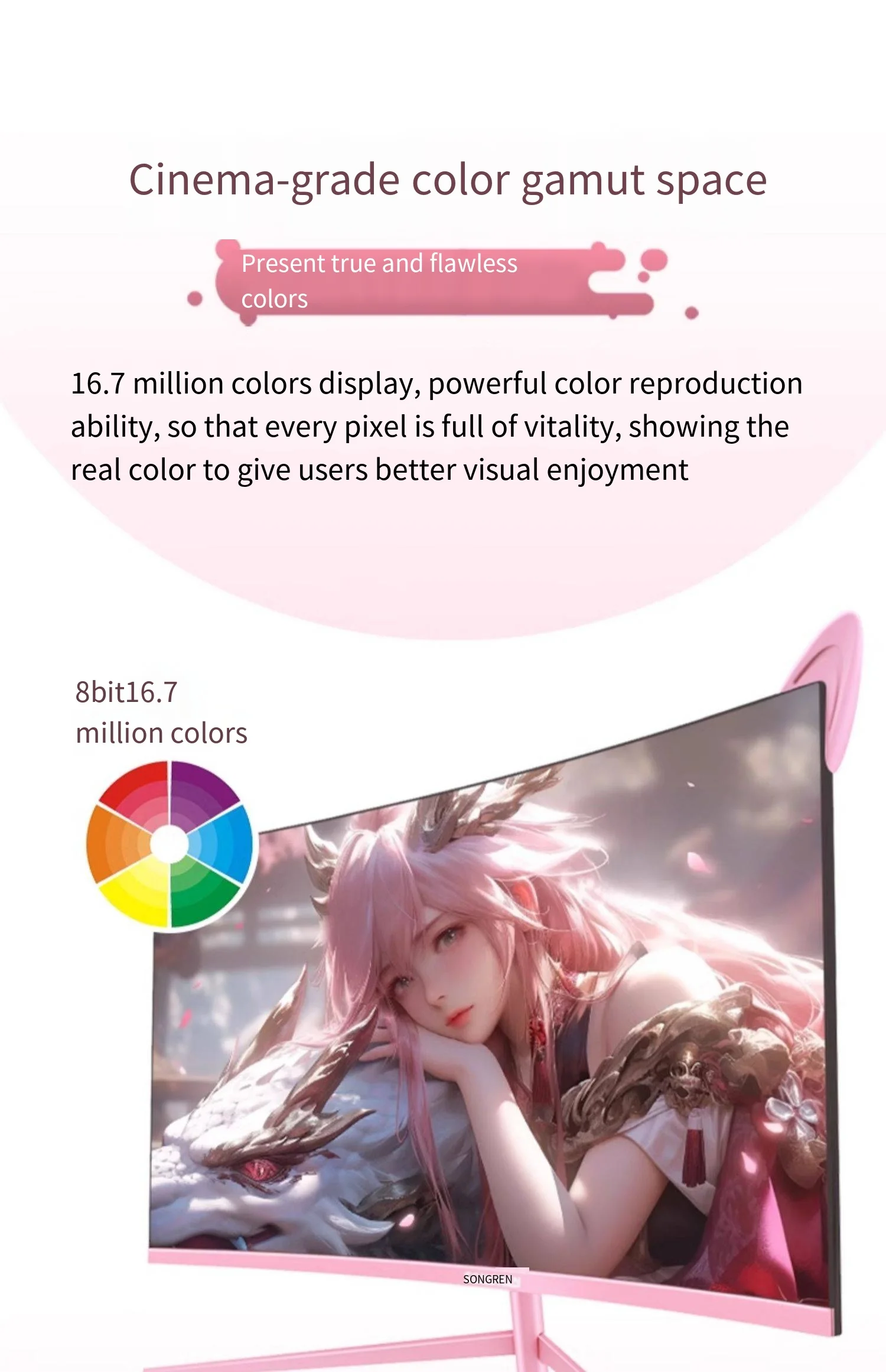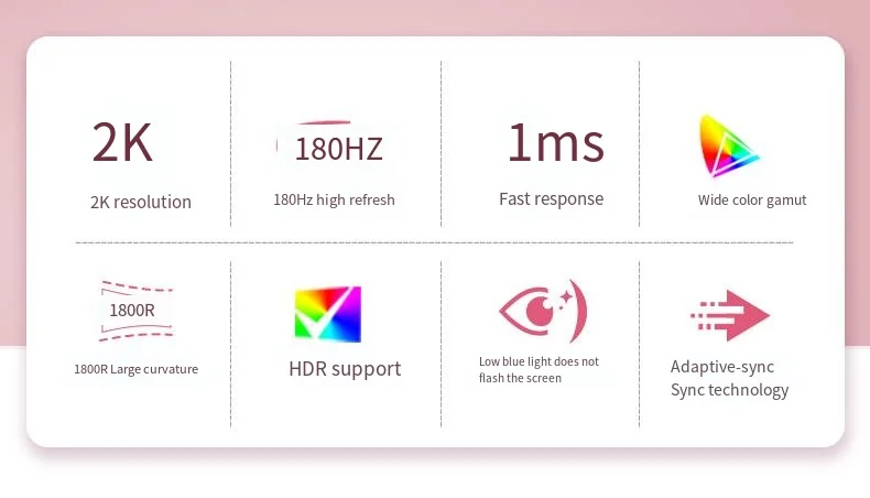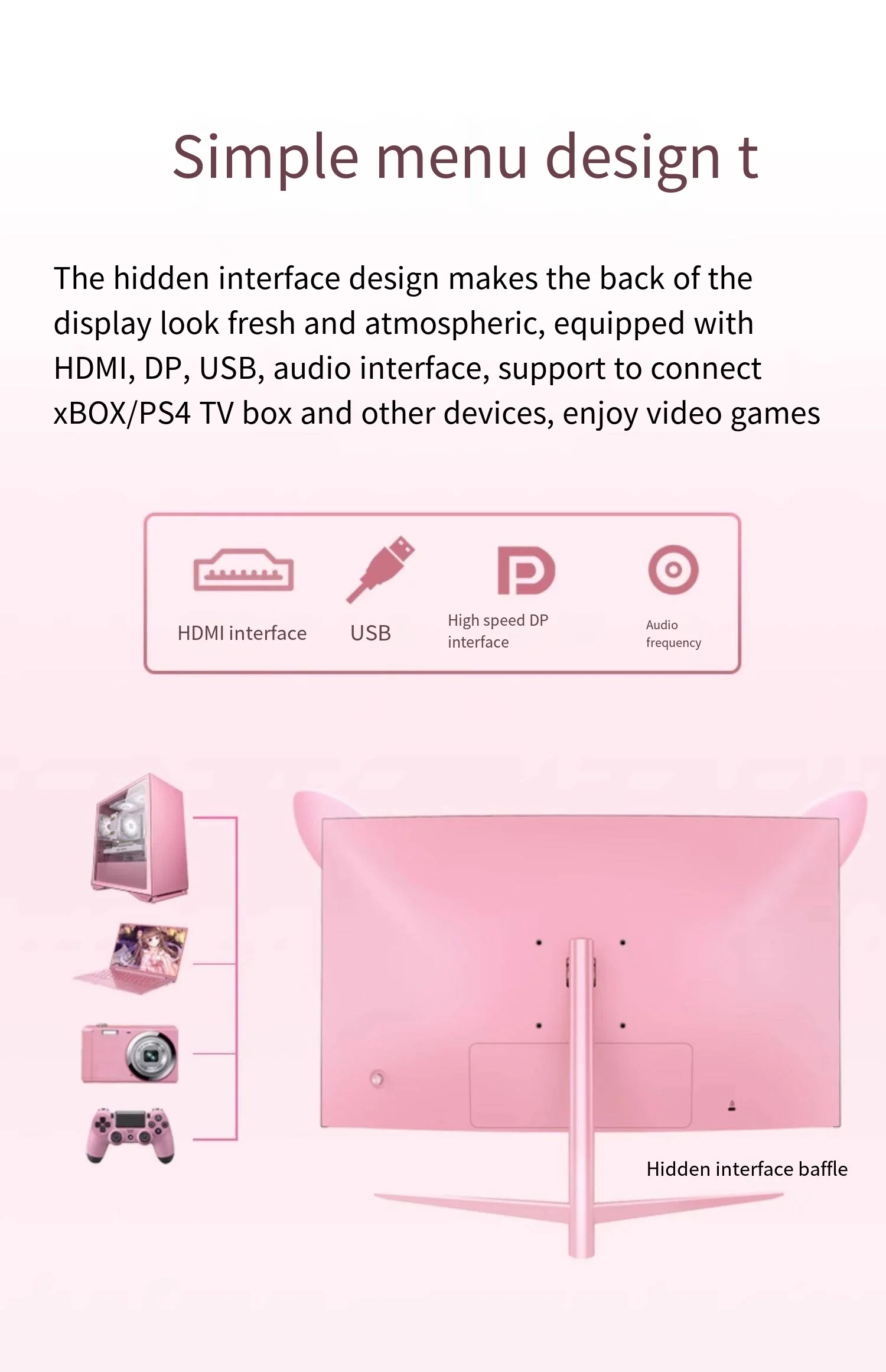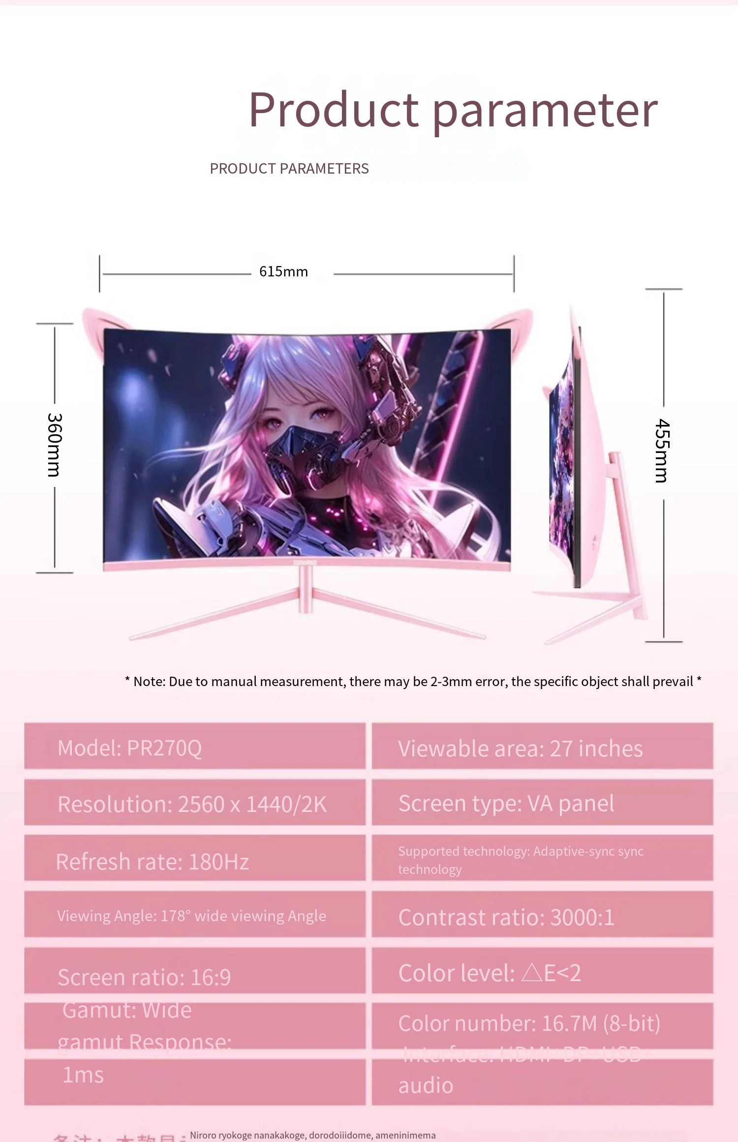 Comprar Monitor rosa curvo de 27 pulgadas 1800R, pantalla de ordenador, pantalla de 2K180HZ, Monitor para juegos, HDMI + DP + USB VA PANEL HDR