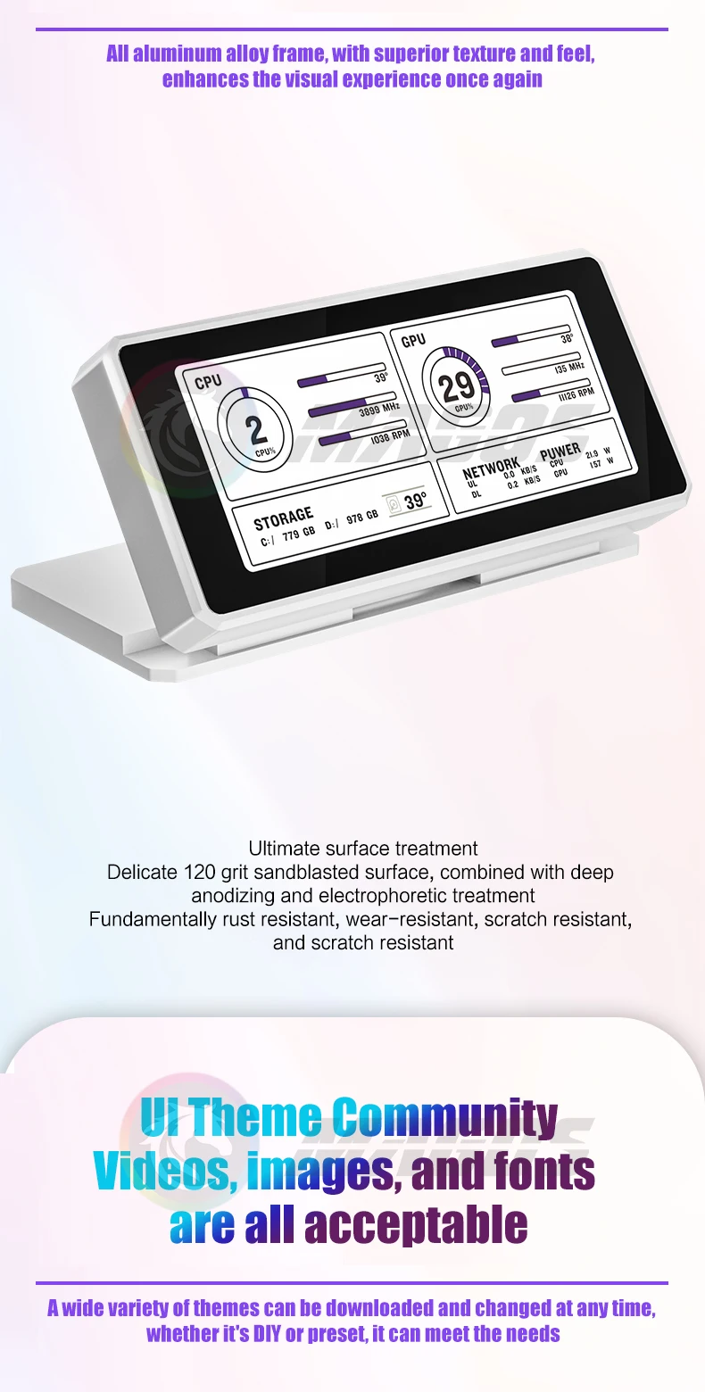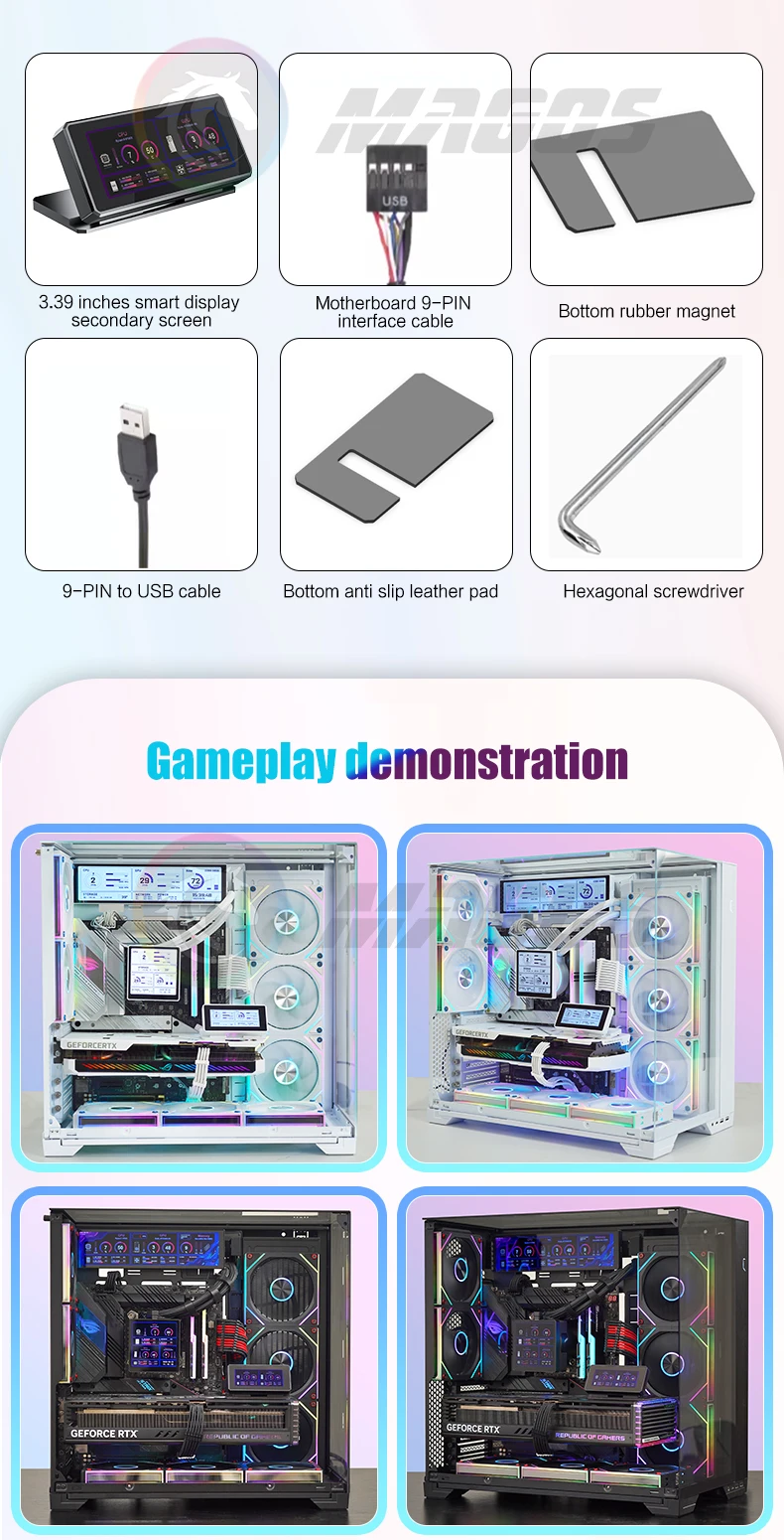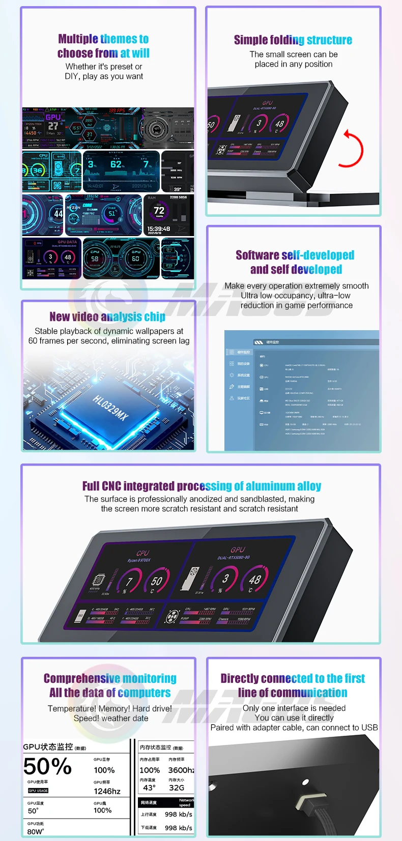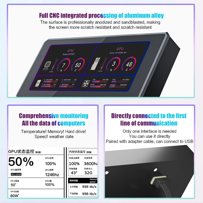 Monitor secundario de computadora de escritorio de 3,39 pulgadas IPS de aluminio completo USB 1 Cable-Link, pantalla de tarjeta gráfica iGame Vulcan Edition
