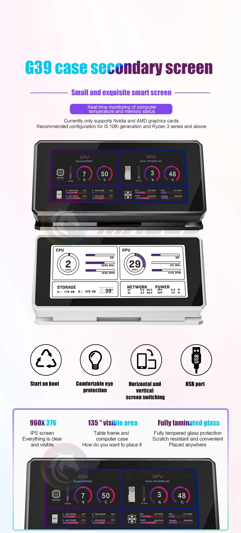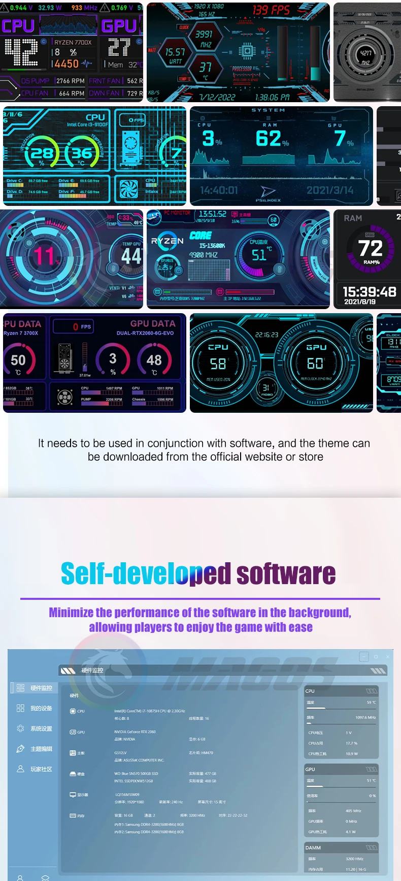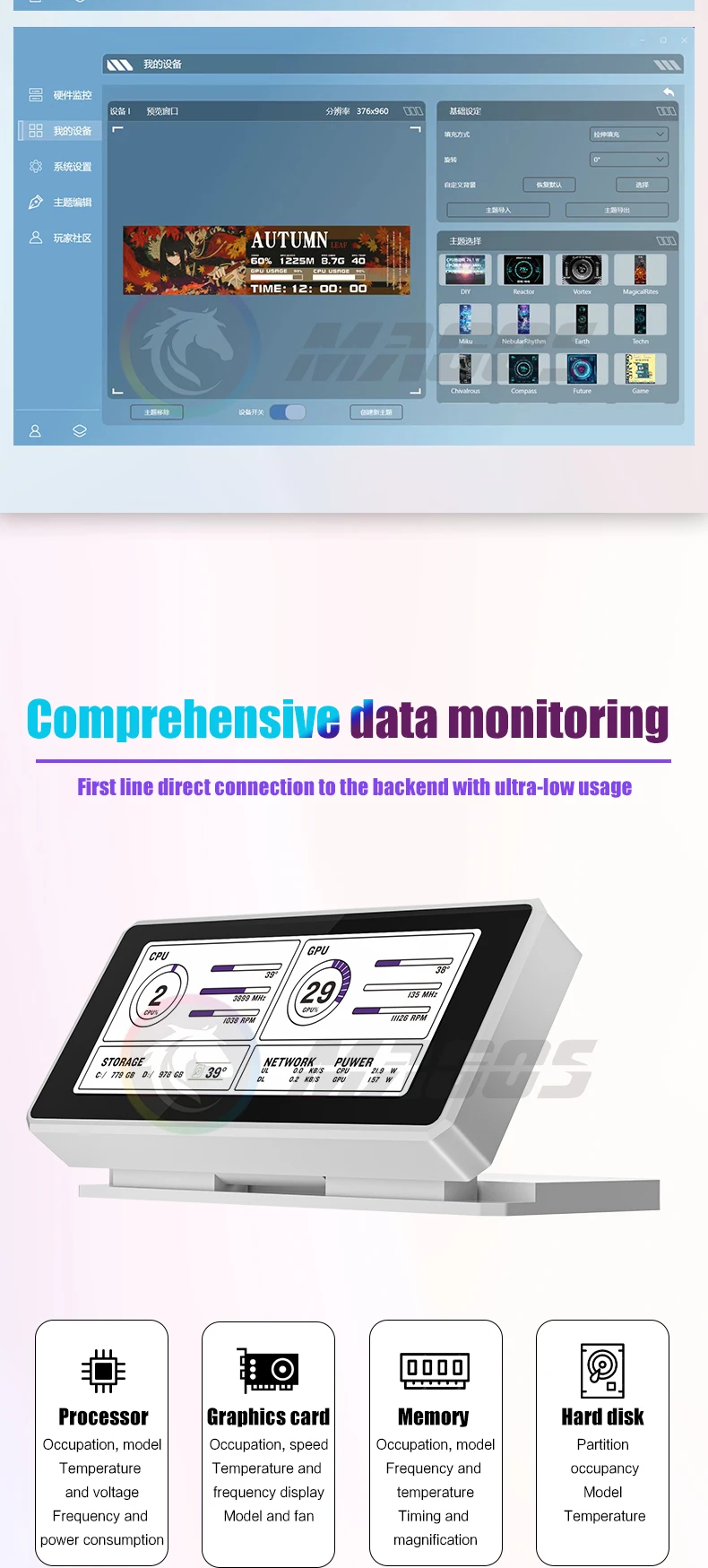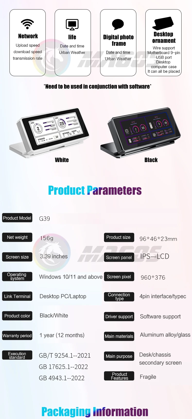 Monitor secundario de computadora de escritorio de 3,39 pulgadas IPS de aluminio completo USB 1 Cable-Link, pantalla de tarjeta gráfica iGame Vulcan Edition