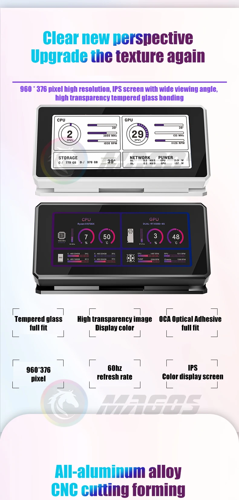 Comprar Monitor secundario de computadora de escritorio de 3,39 pulgadas IPS de aluminio completo USB 1 Cable-Link, pantalla de tarjeta gráfica iGame Vulcan Edition