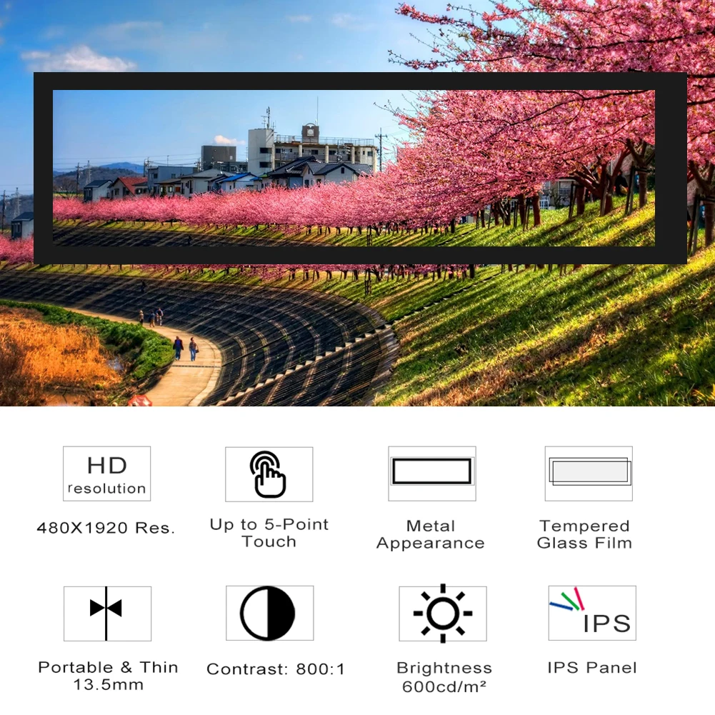 8 8 pulgadas tira larga 1920X480 táctil capacitiva segunda pantalla CPU GPU SSD IPS LCD Sub pantalla Monitor AIDA64 Placa de controlador USB compatible con HDMI control de temperatura 480X1920 con soporte para Windows Linux Raspberry Pi