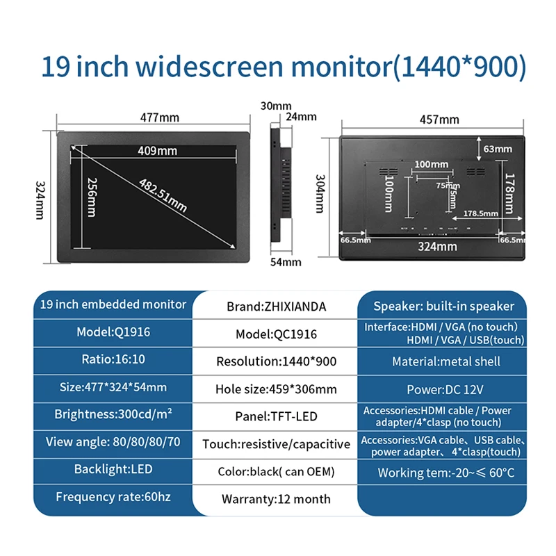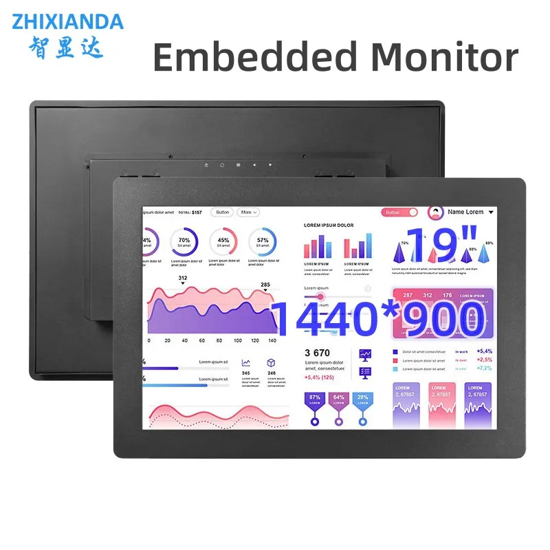 Comprar Monitor táctil Industrial integrado, pantalla de montaje en Panel de 19 pulgadas, 1440x900, con interfaz HDMI, VGA, DVI, para automatización Industrial