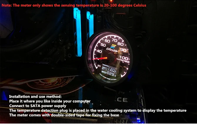 Comprar Monitor de temperatura, termómetro brillante, puntero Thermografh, indicador de pantalla, medidor de temperatura para sistema de refrigeración por agua de PC