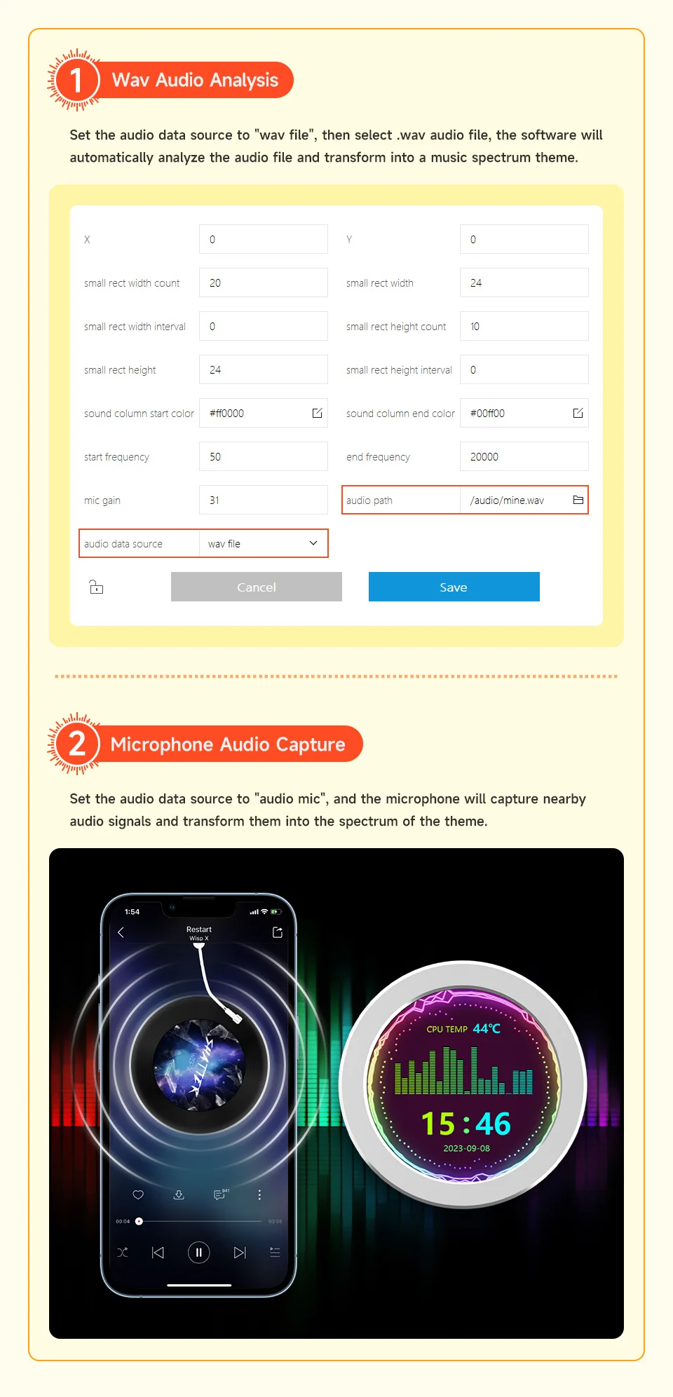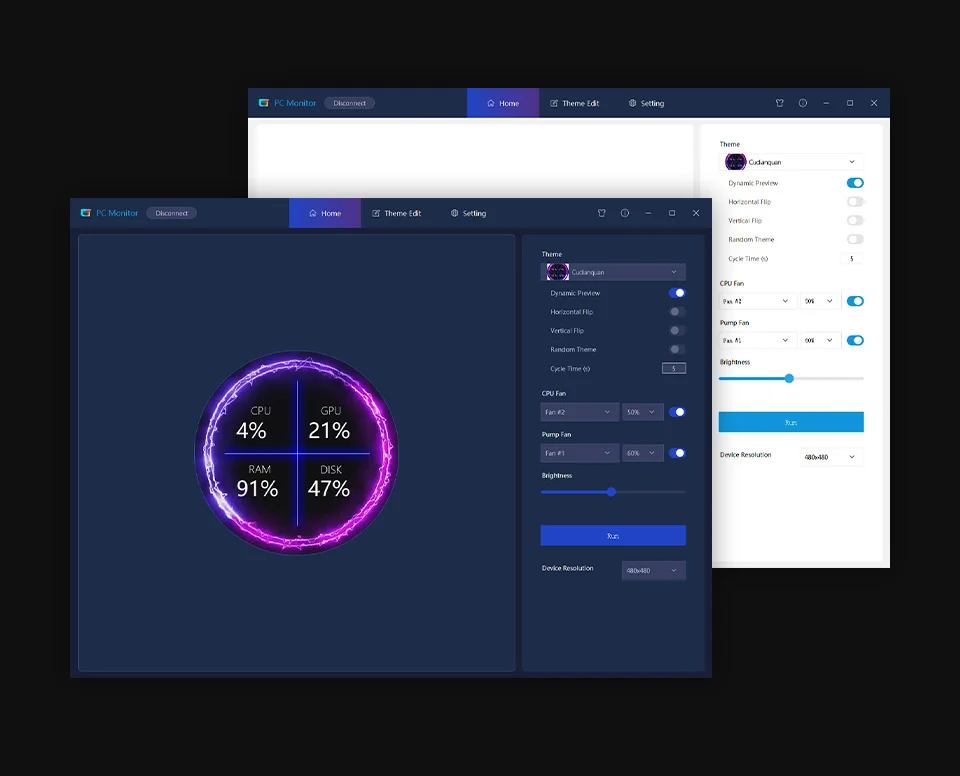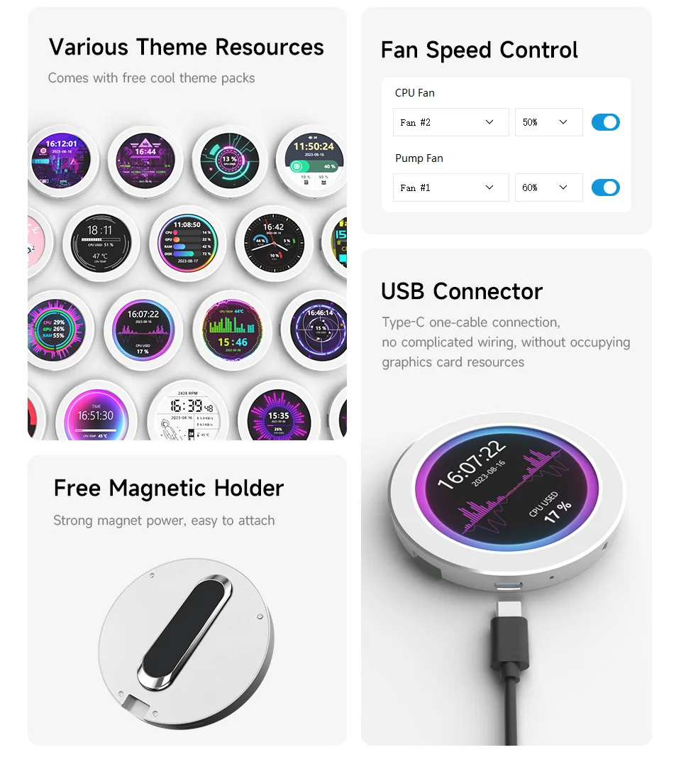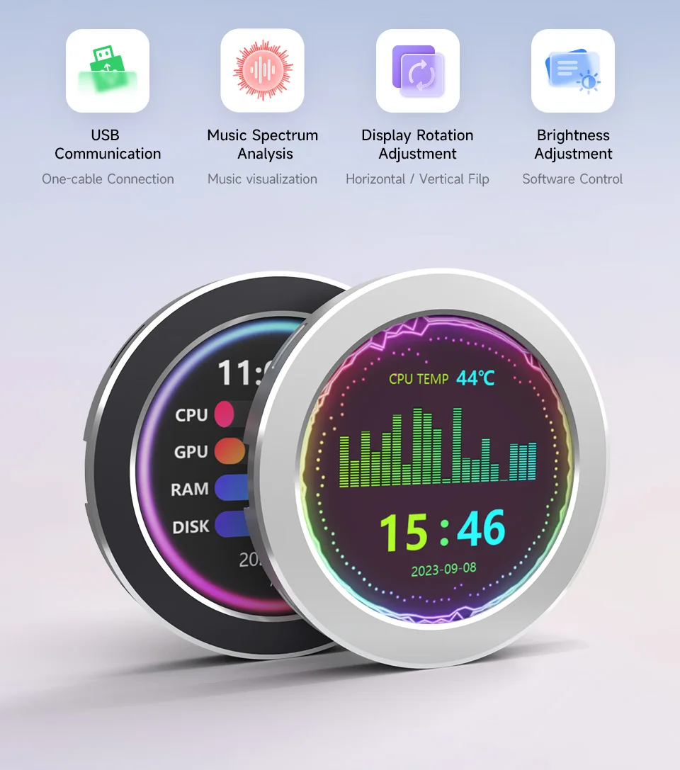 Úselo con el software que le proporcionamos y haga clic en "executar" después de que la pantalla se conecte al host.Admite inicio automático en el arranque, un clic para cambiar temas, ajuste de brillo, etc.