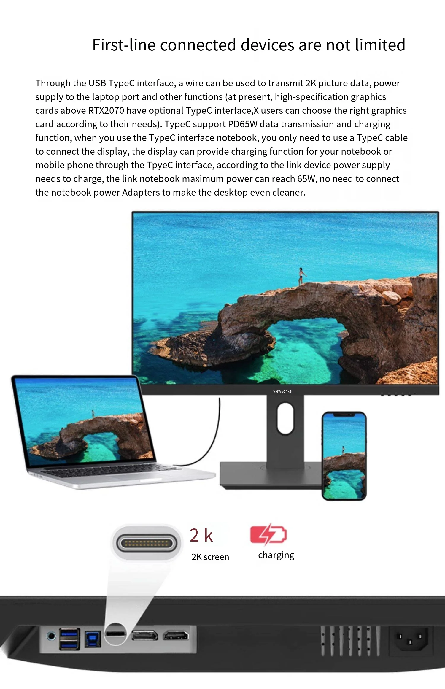 Comprar Monitor ViewSonic VX2462-2K-MHDU pantalla QHD IPS de 23,8 pulgadas 75Hz HDR10 HDMl/DP/tipo C monitor giratorio de elevación con altavoz