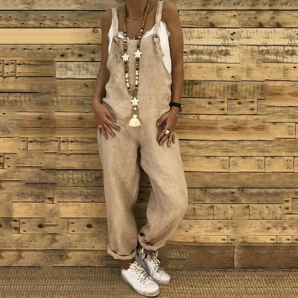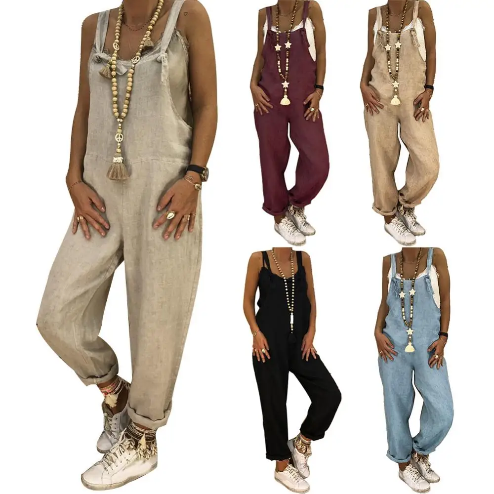 Comprar Mono informal sin mangas para mujer, peto holgado ajustable con tirantes, Color liso