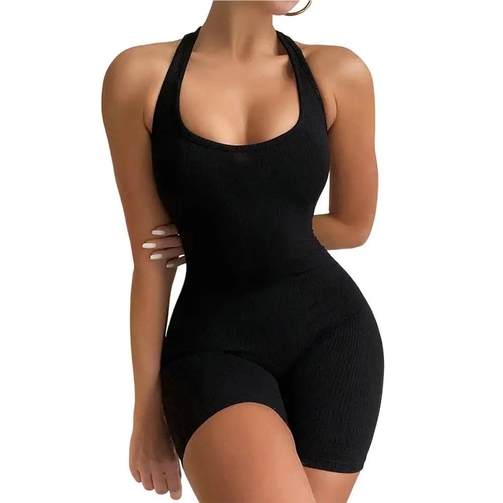 Comprar Mono de Yoga elegante para mujer, mono deportivo de absorción del sudor, sin mangas, elástico alto, básico, ajustado