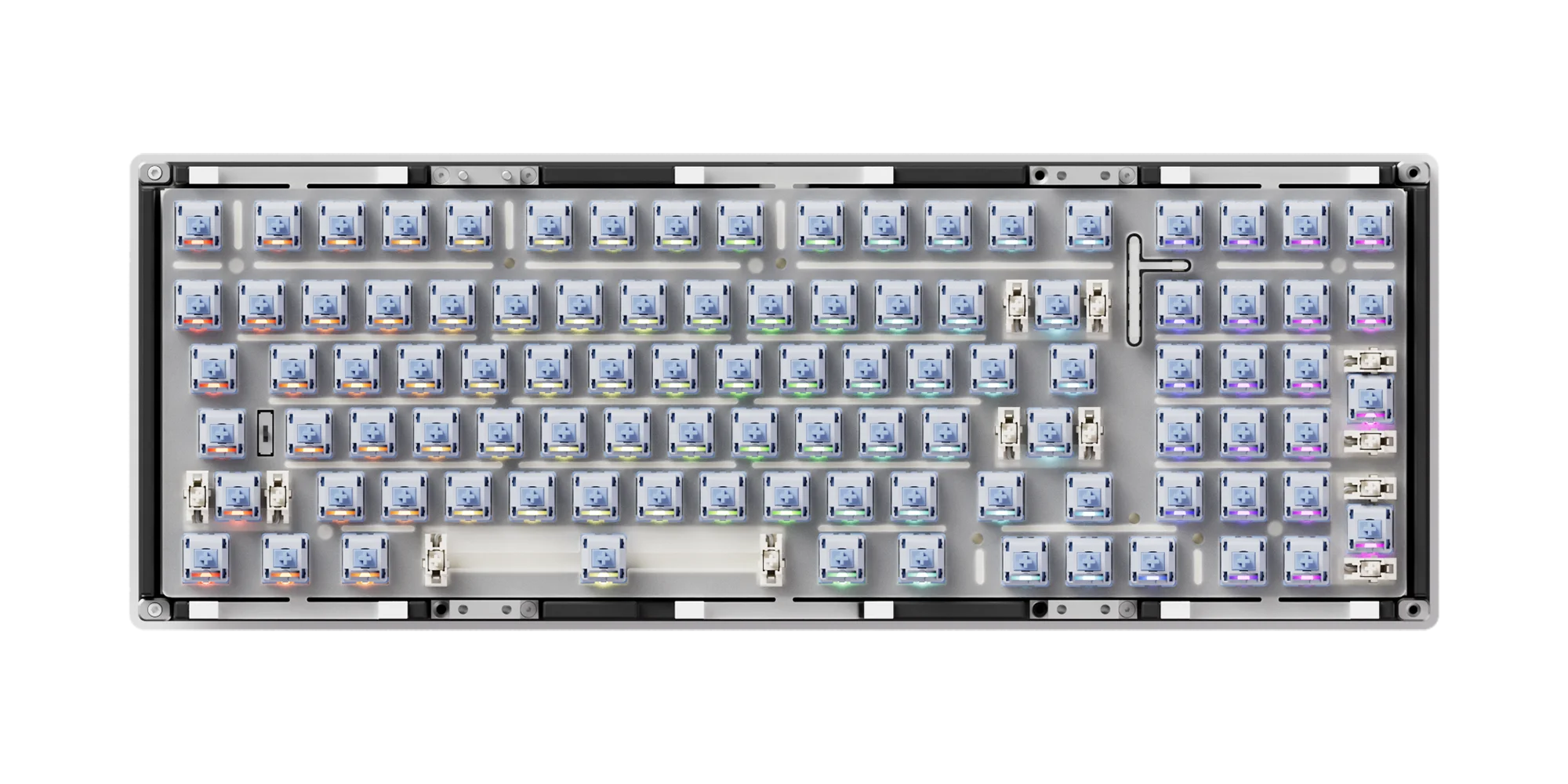El teclado con montura de junta MonsGeek es un tipo de teclado mecánico que utiliza un material de junta, como silicona o neopreno, para crear un soporte "flotante" para los interruptores.La junta se coloca entre la placa y la PCB, lo que permite una experiencia de escritura más flexible y acolchada.
