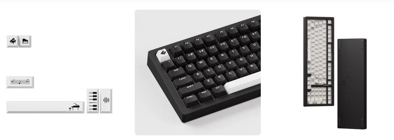 Inspirado en las teclas de piano en blanco y negro, el M2 V5 Quick-Release totalmente ensamblado adopta colores clásicos en blanco y negro, complementados con 6 teclas novedosas con temática de piano.Escribir se siente como tocar el piano.