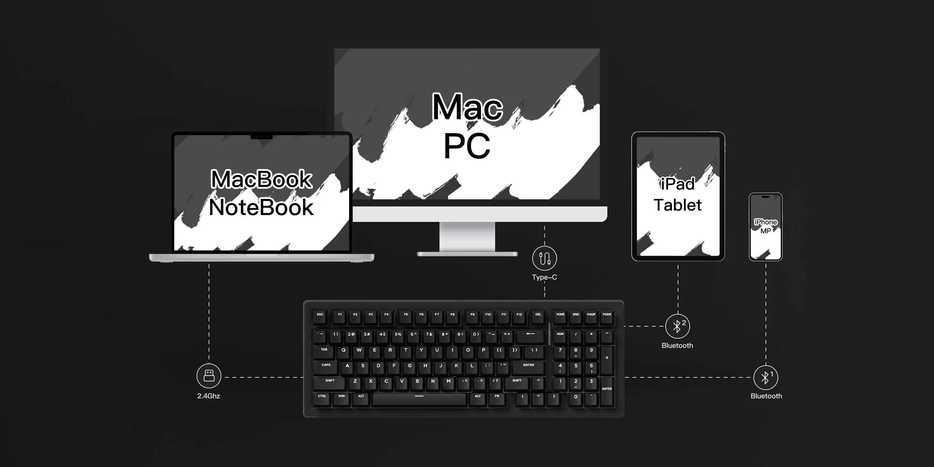 Permite cambiar fácilmente entre los modos cableados, Bluetooth y inalámbricos de 2,4 GHz para una experiencia fluida en todos los dispositivos.Compatible con Windows y Mac, este teclado versátil ofrece un rendimiento y comodidad excepcionales.Mejore la productividad con este teclado adaptable.