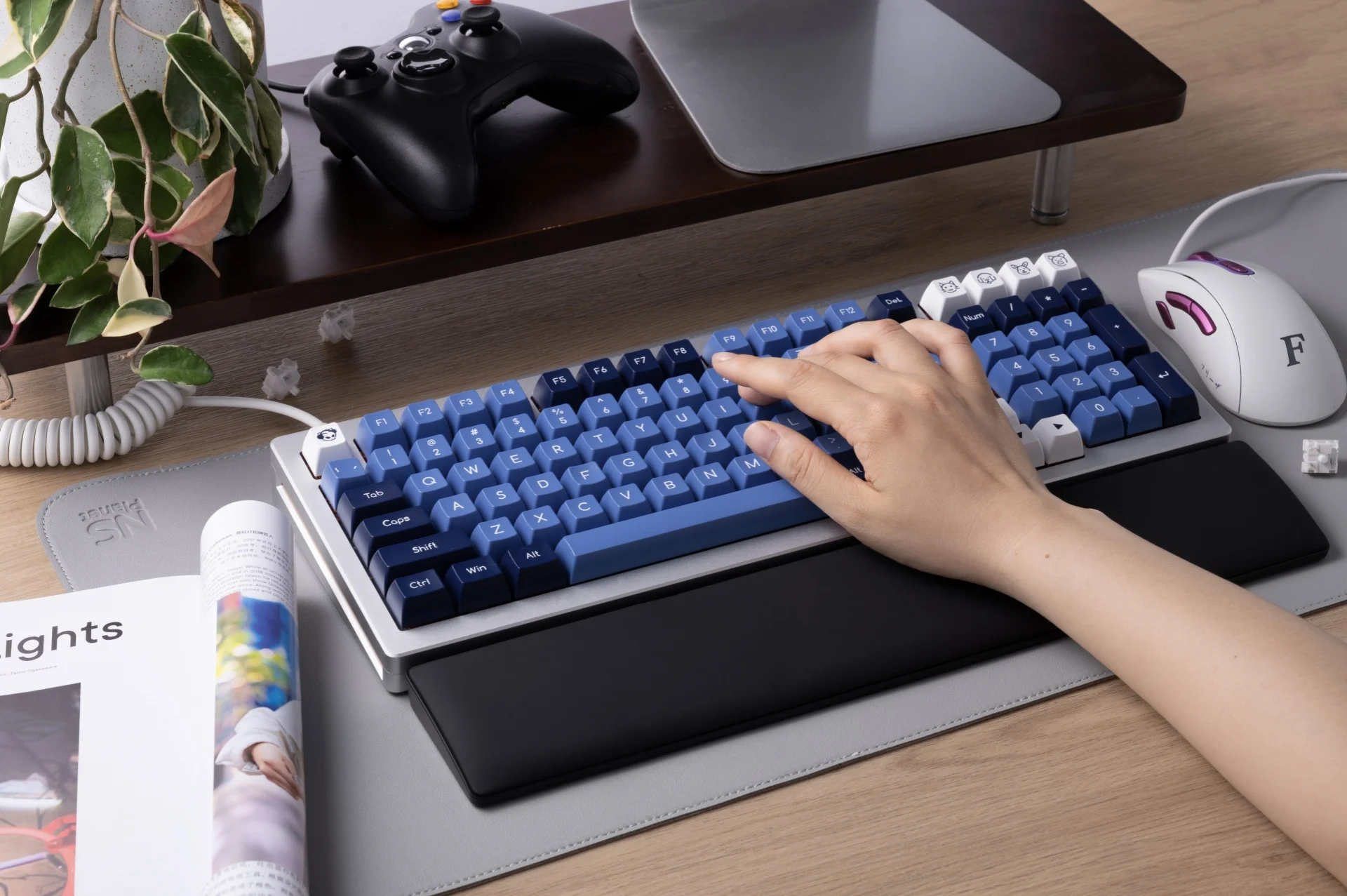 Equipado con cojín de espuma viscoelástica, El reposamuñecas está diseñado para soportar las muñecas durante largos períodos de trabajo y juego sin deformarse.