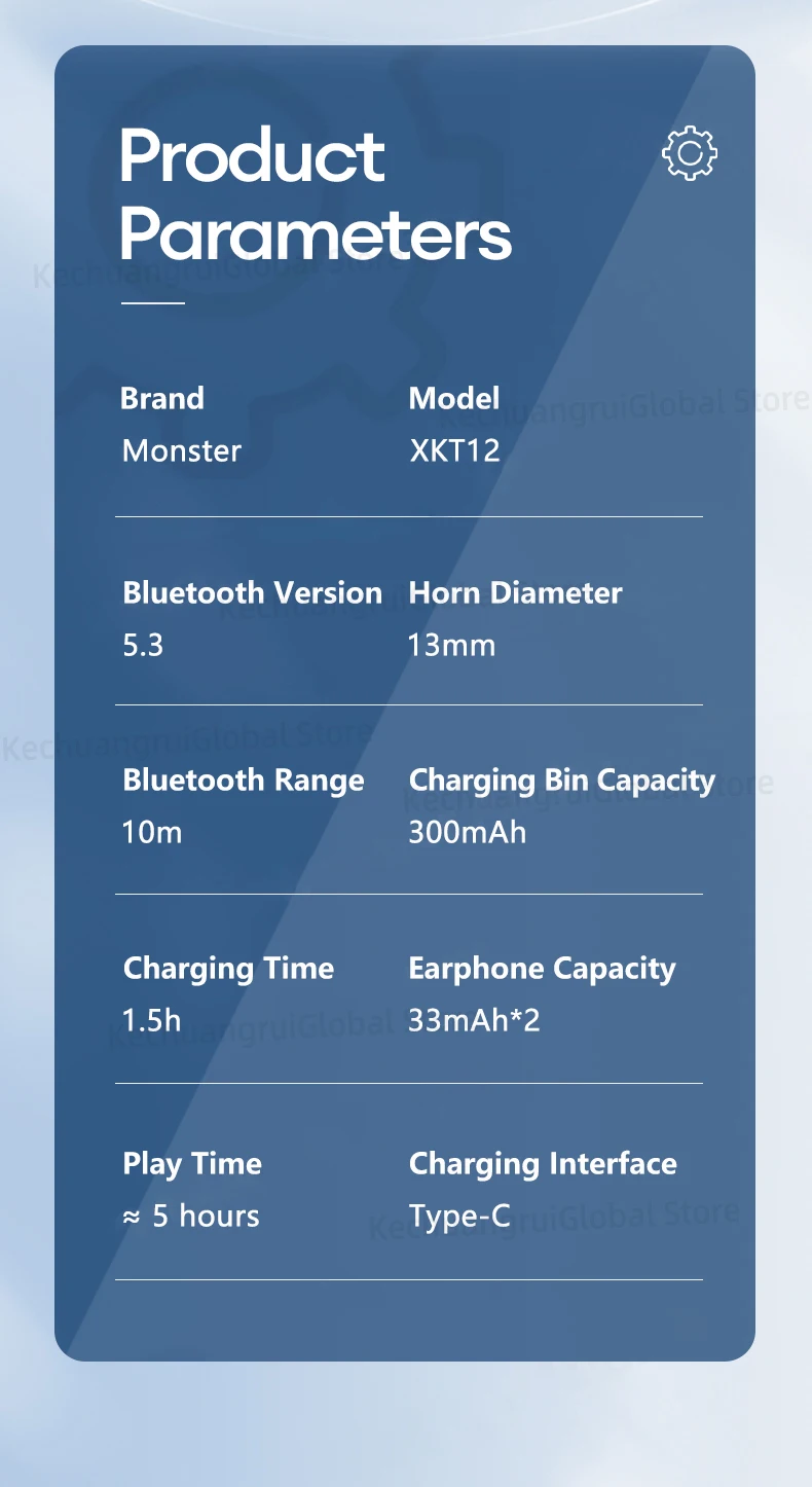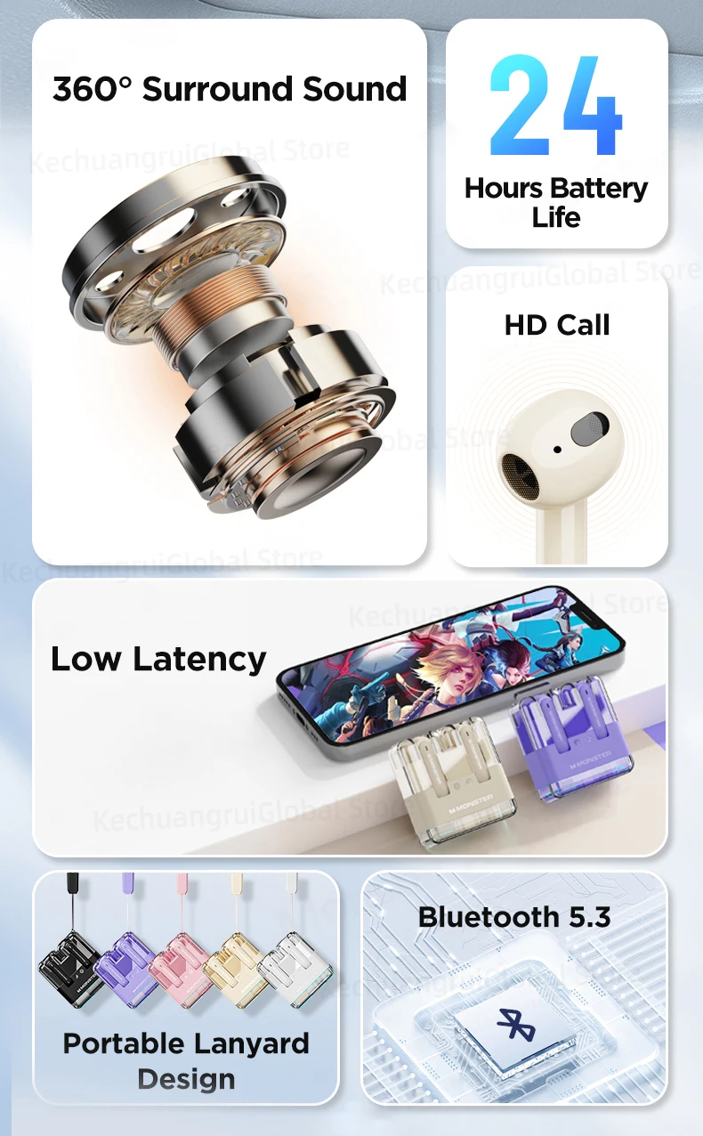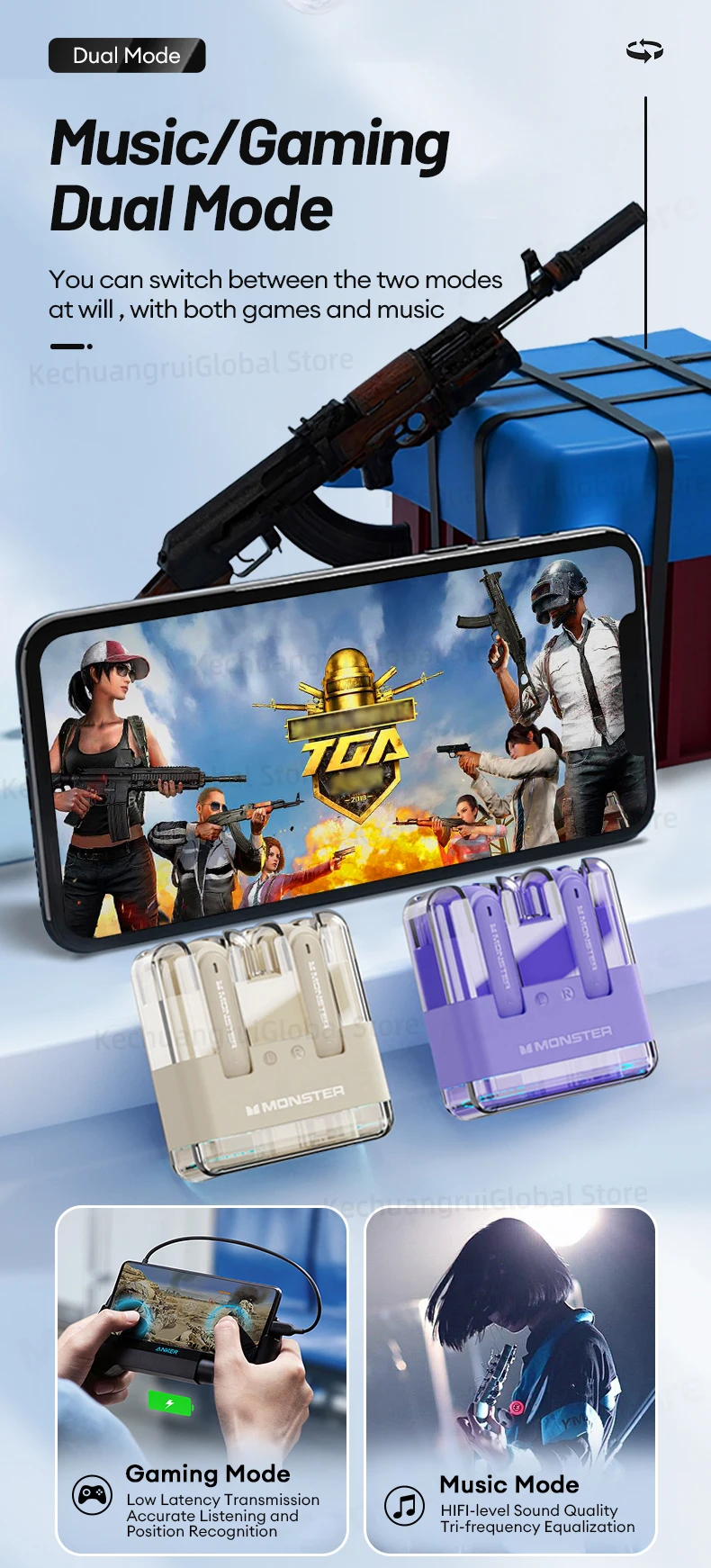 Comprar Monster-auriculares inalámbricos XKT12 para videojuegos, cascos originales con Bluetooth 5,3, TWS, sonido HIFI, deportivos, reducción de ruido, 300mAh