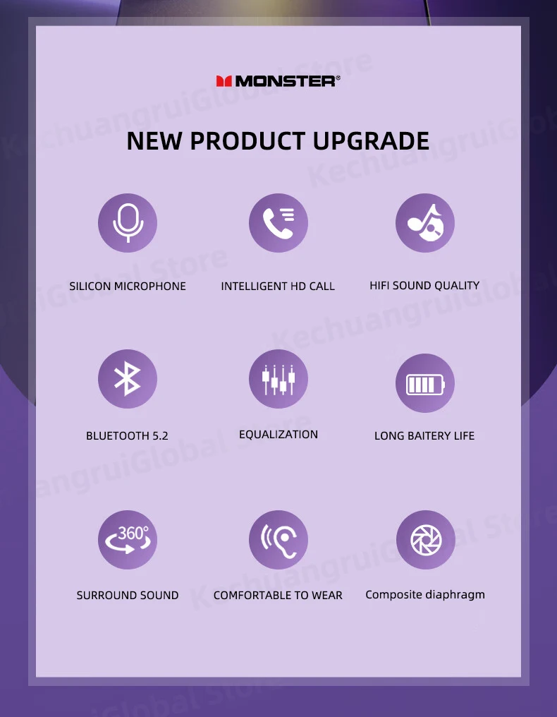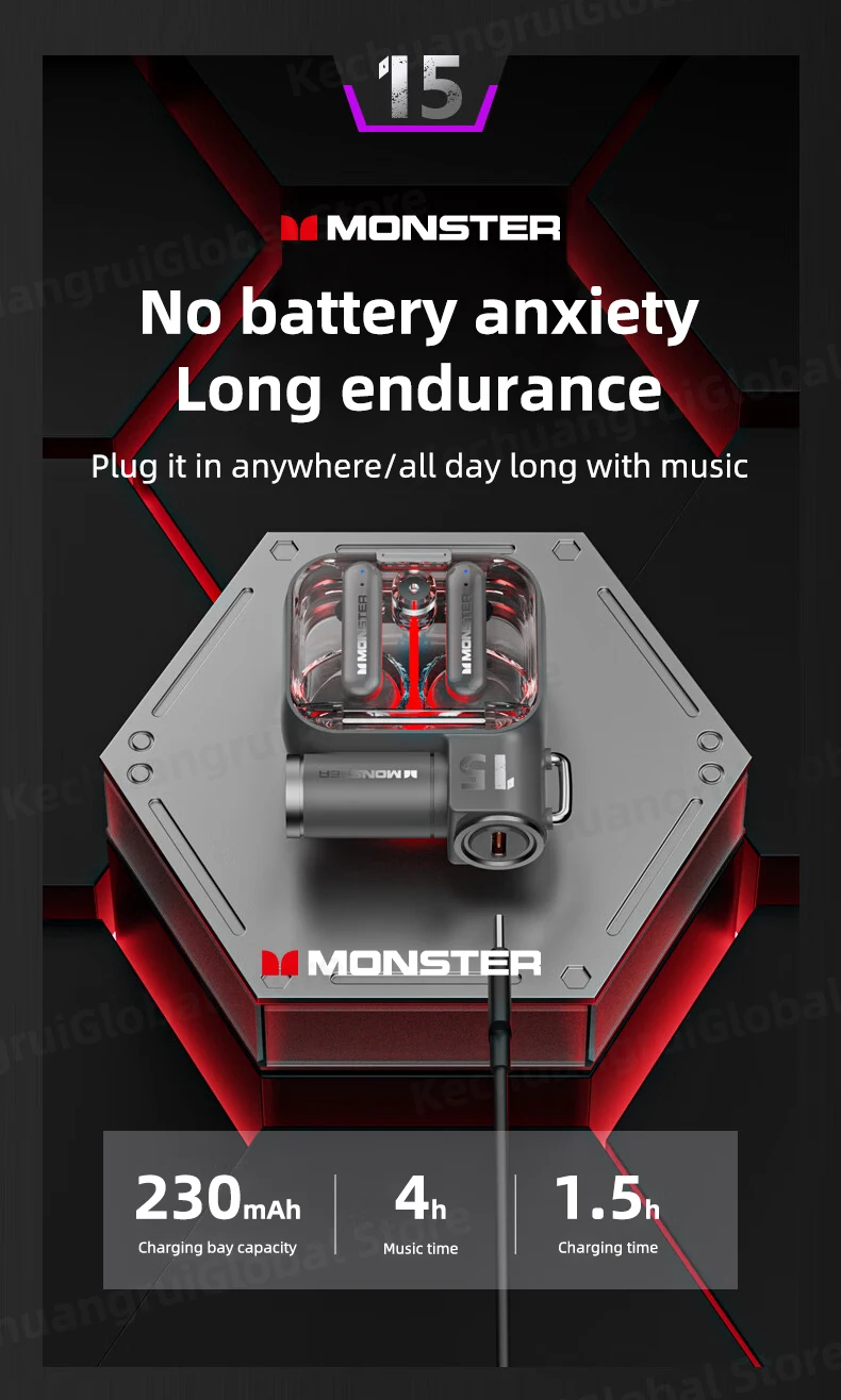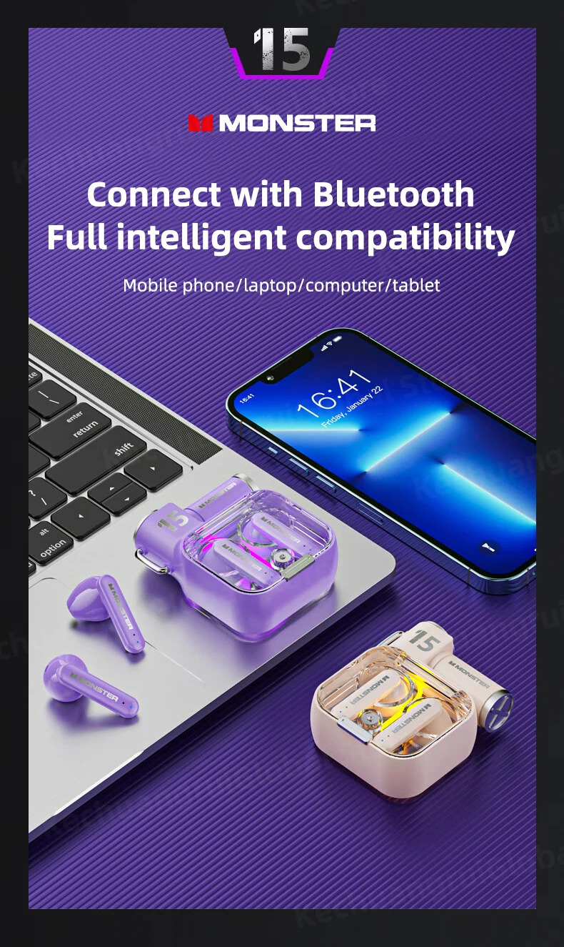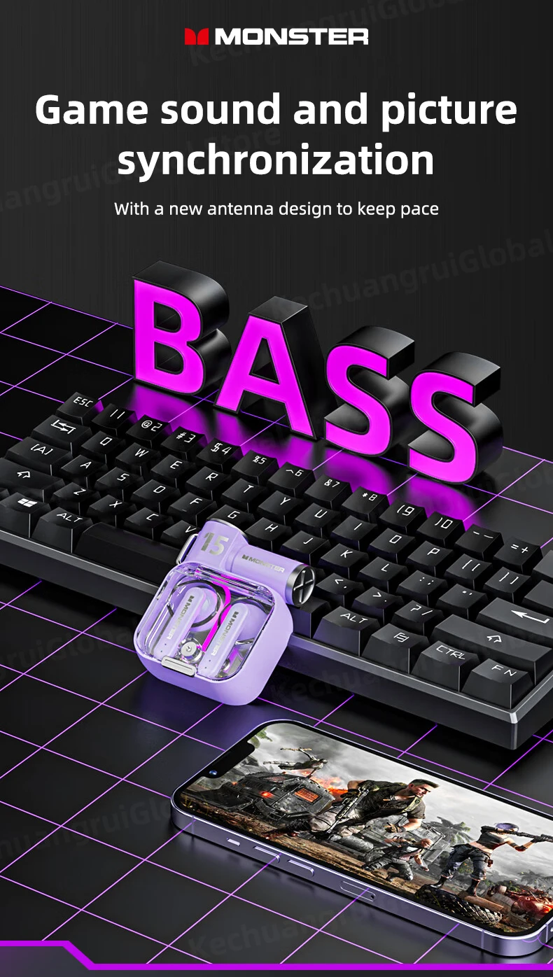 Monster XKT15 Auriculares inalámbricos Bluetooth 5,3 Auriculares para juegos Diseño único Auriculares para jugadores TWS Auriculares con reducción de ruido Nuevo