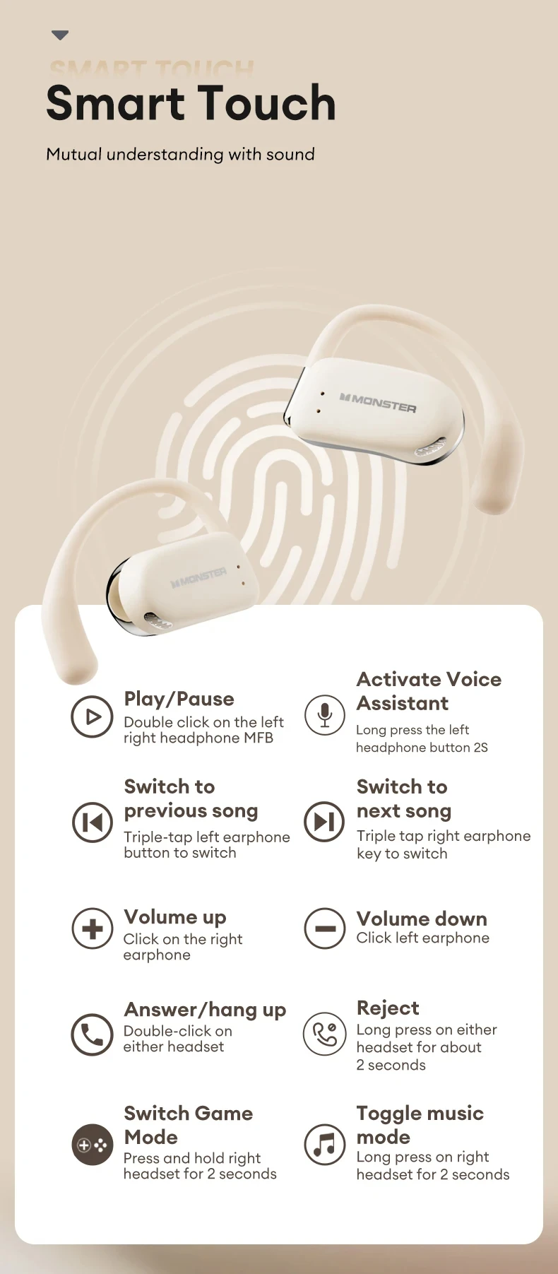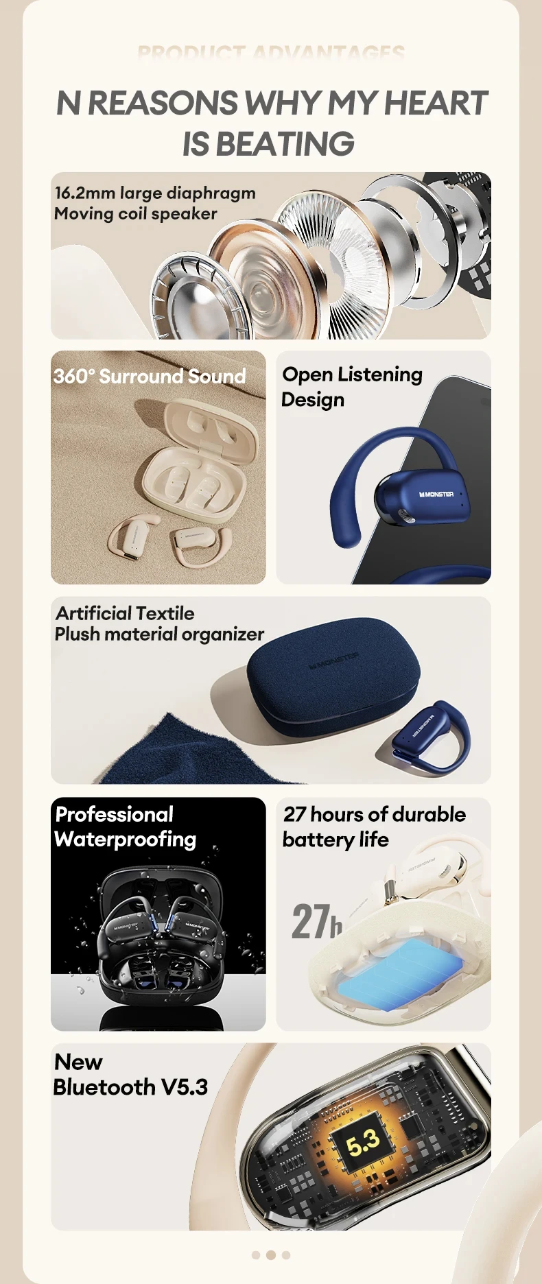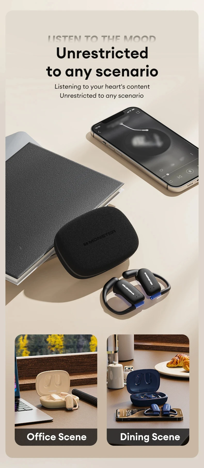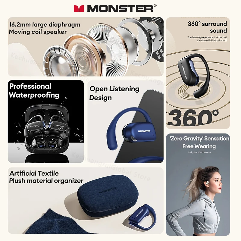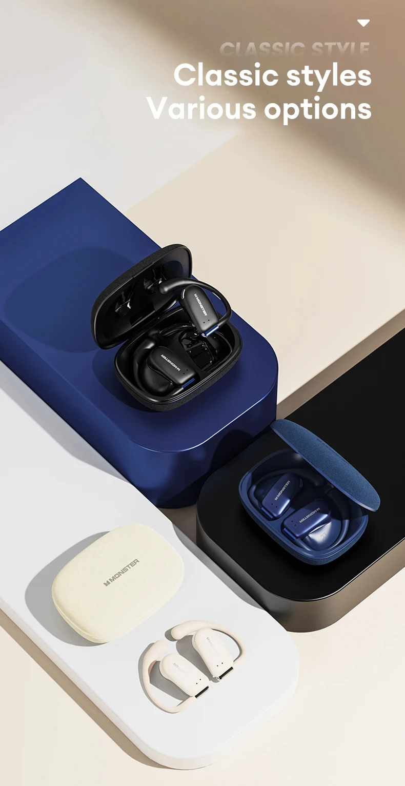 Comprar Monster XKO07-Auriculares deportivos inalámbricos, audífonos TWS con Bluetooth 5,3, reducción de ruido, Sonido Envolvente, gancho para la oreja para juegos, modo de espera largo