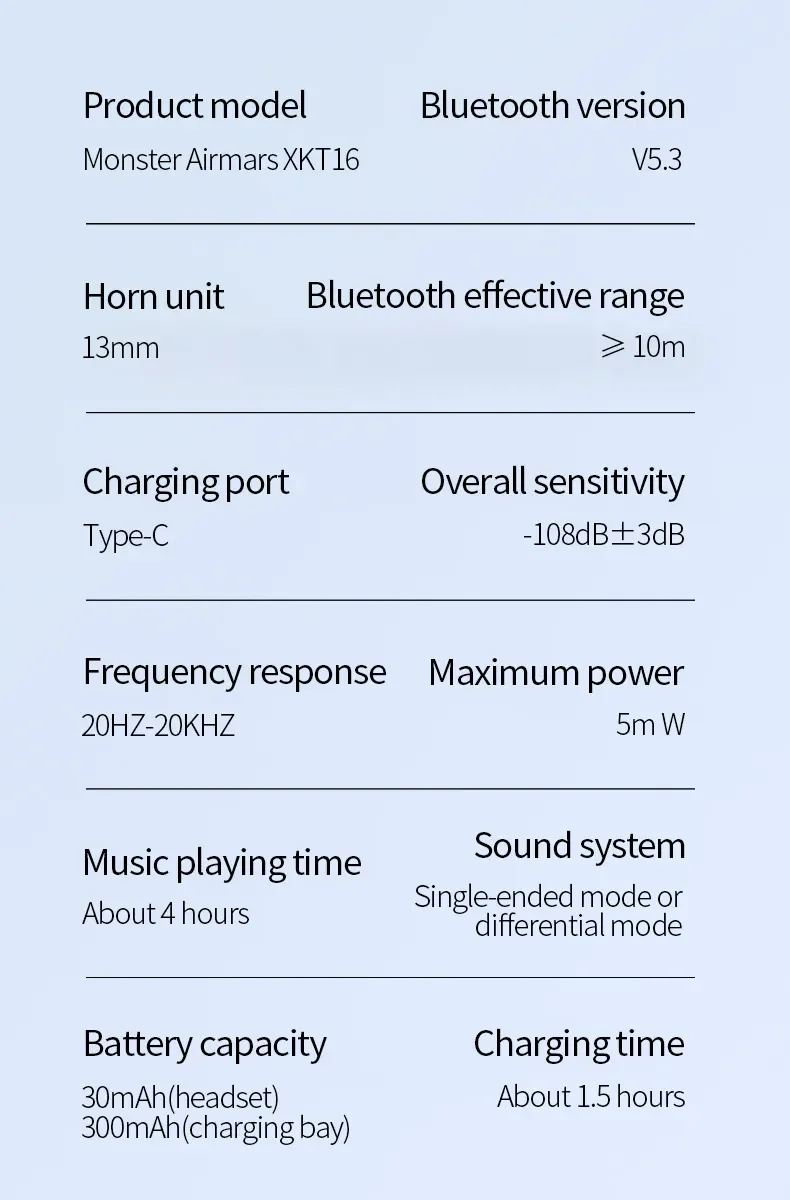 Comprar Monster XKT16 auriculares inalámbricos Bluetooth 5,3 auriculares para juegos sonido HiFi HD llamada música auricular Control táctil auriculares modo Dual