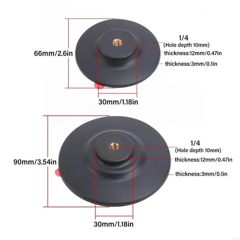 Fabricada en plástico, esta placa de montaje cuenta con una base adhesiva, lo que la hace adecuada para varios soportes para teléfonos y soportes para transmisión en vivo sin necesidad de cinta de doble cara.