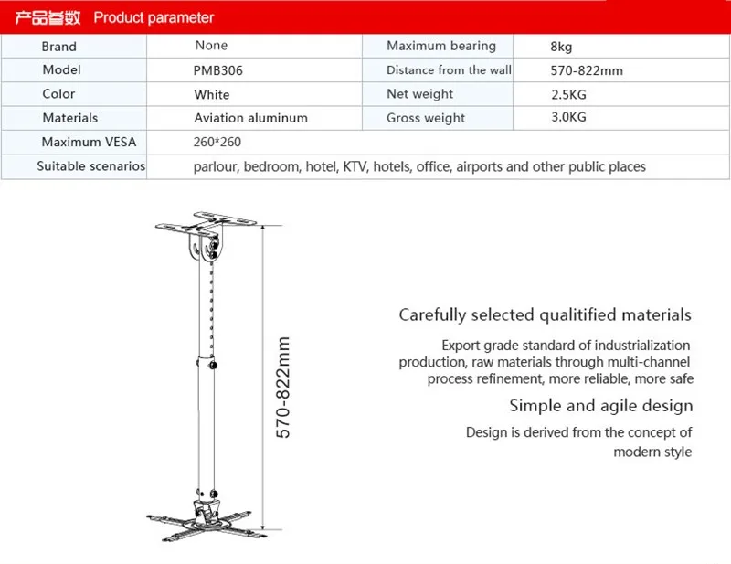 Comprar Montaje ajustable para proyector PMB306, soporte para proyector, soporte máximo de 8KG de peso