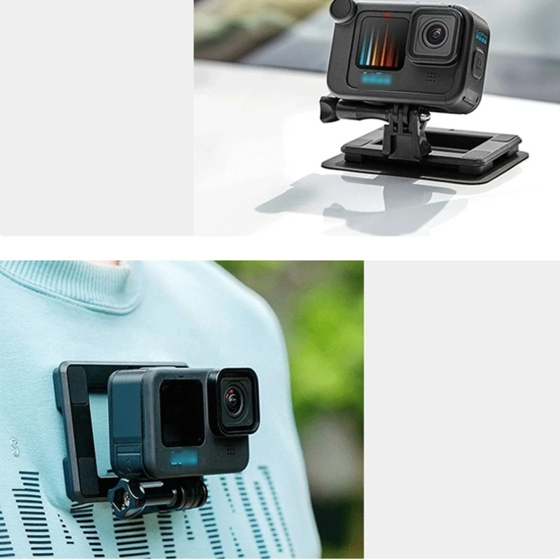 Debido a que se utiliza el imán fuerte N35, el soporte también se puede adsorber en la superficie de objetos de hierro (por ejemplo: estante/valla de hierro/parte del capó de coche de hierro) para disparos fijos;