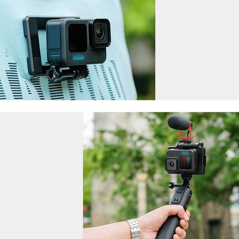 La parte inferior del soporte se puede conectar con un tornillo de 1/4 pulgadas para conectar un palo selfie/trípode, etc. para disparos móviles;