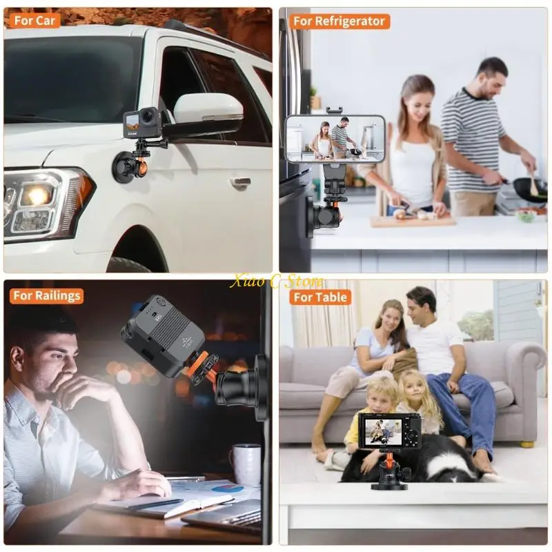 Perfecto para capturar vídeos con vueltas de tiempo estable en escritorios de oficina, montar cámaras de acción en bicicletas o asegurar dispositivos a superficies metálicas durante el viaje.