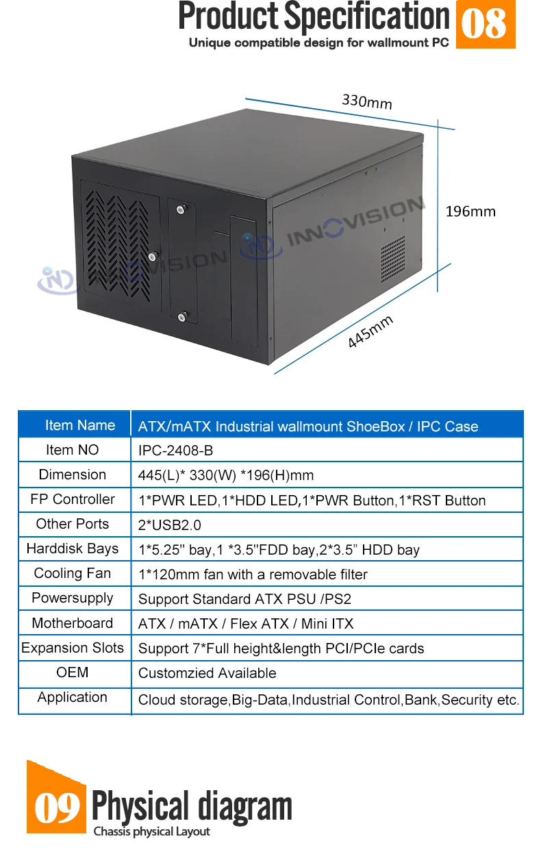 Comprar Montaje en pared de fábrica de Shenzhen, carcasa IPC ATX mATX, montaje en pared, chasis de ordenador industrial, caja de zapatos, IPC-2408-B