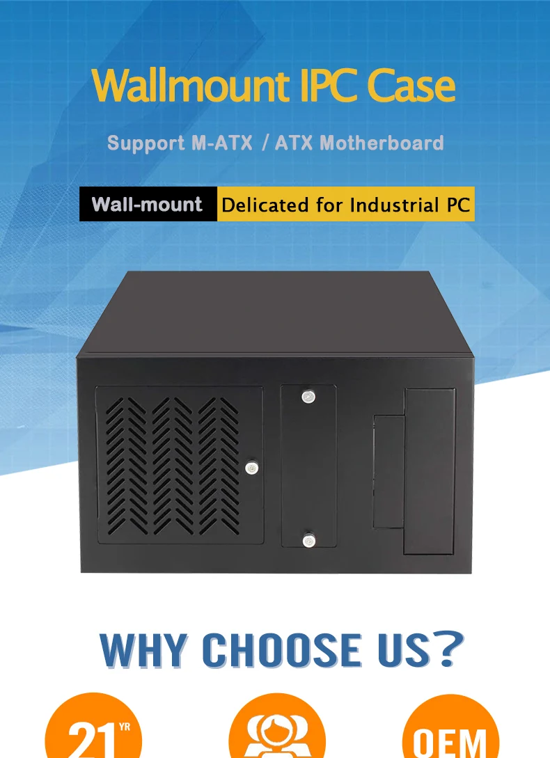 Caja IPC de montaje en pared de fábrica de Shenzhen ATX mATX caja de zapata de chasis de computadora industrial de montaje en pared